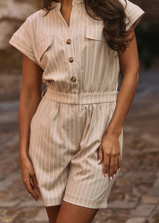 Jina Short Sleeve Jumpsuit - Sandy Beach
