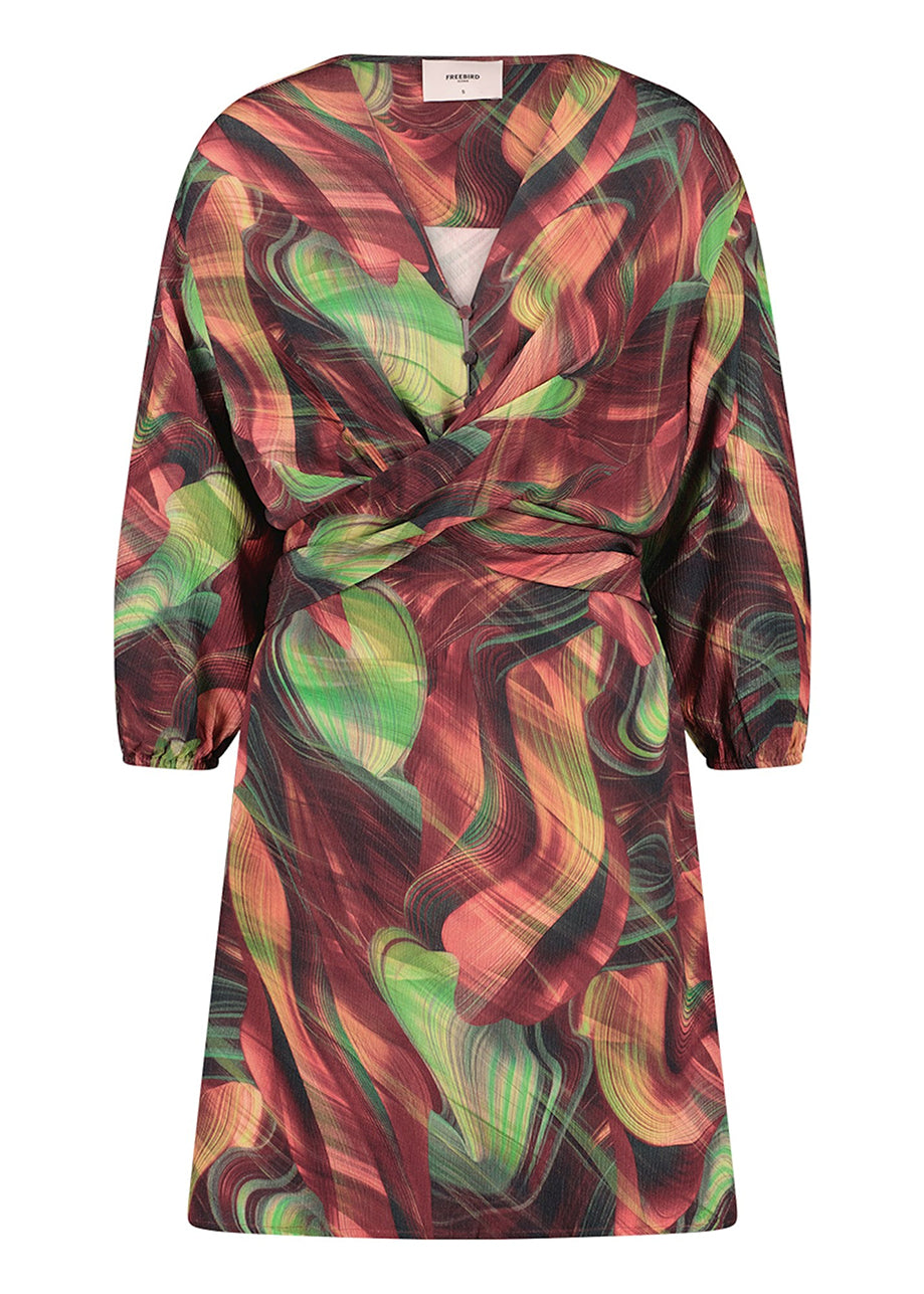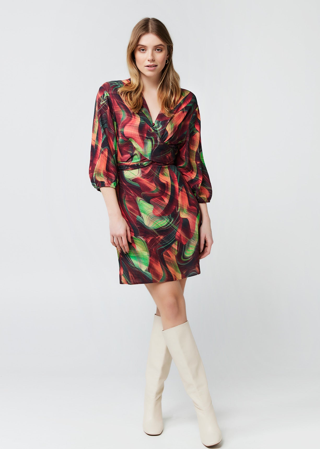 - Beautiful mini dress made of viscose fabric with a graphic print.