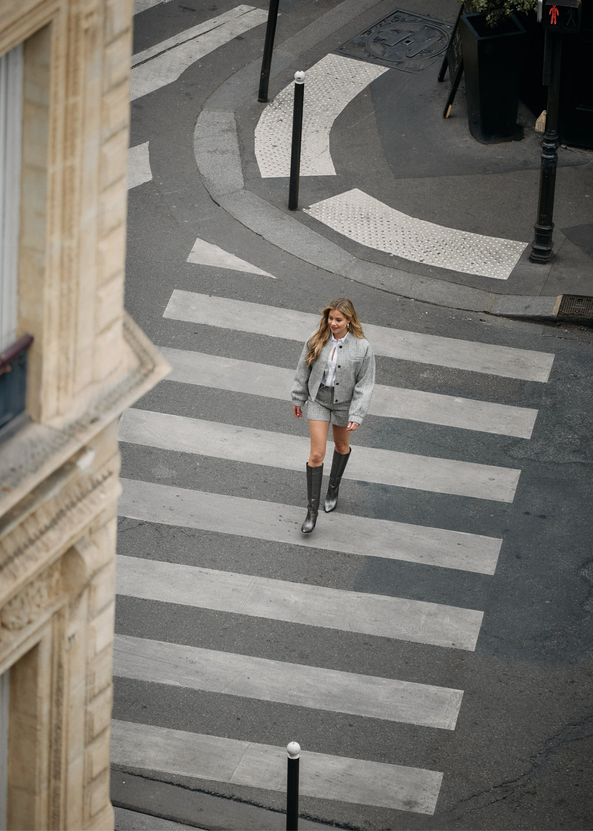- Refined rhinestone detail along the button placket