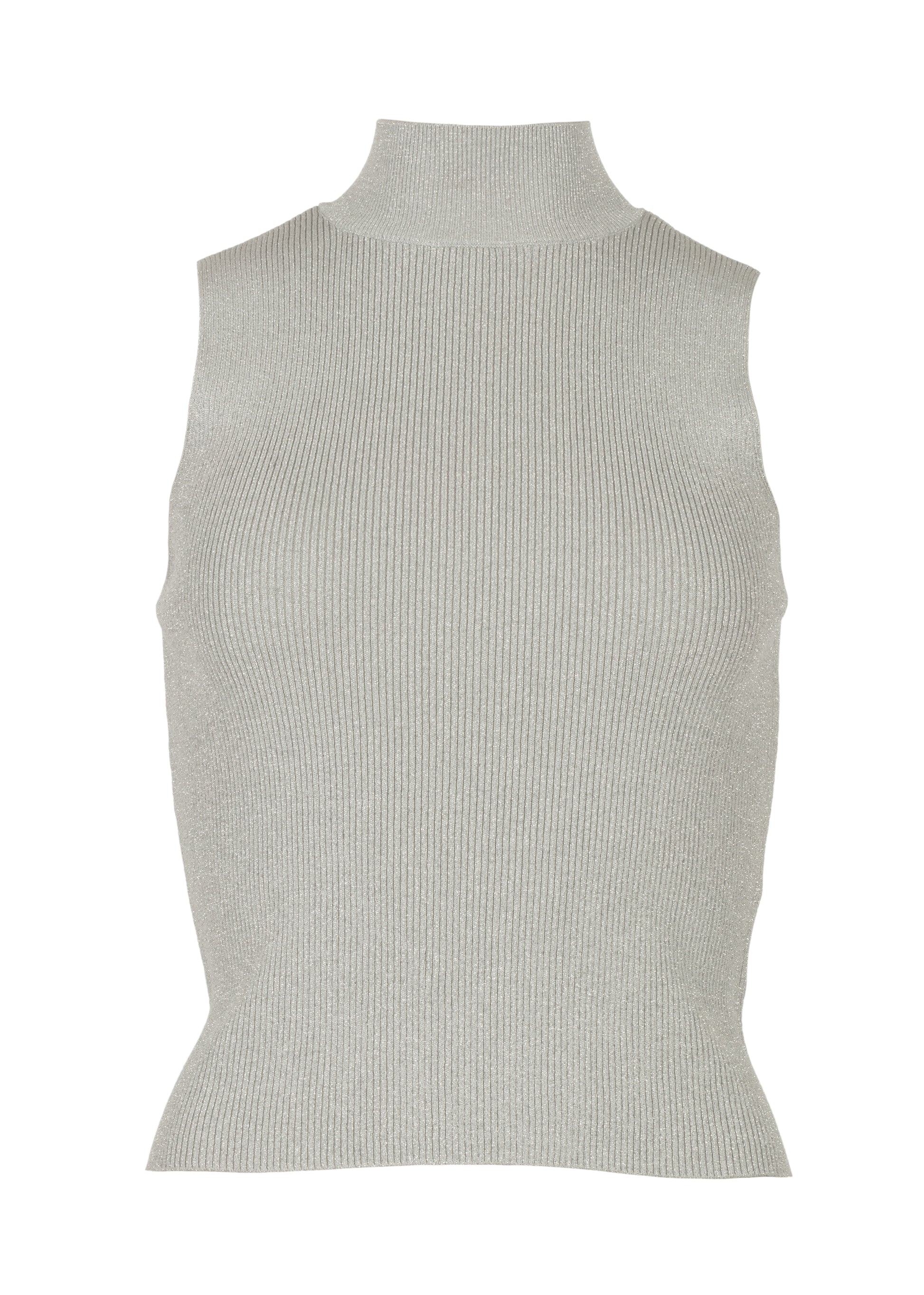 This stylish, fitted top is made from a luxurious blend of silver/grey viscose and lurex yarn for a subtle shimmer.