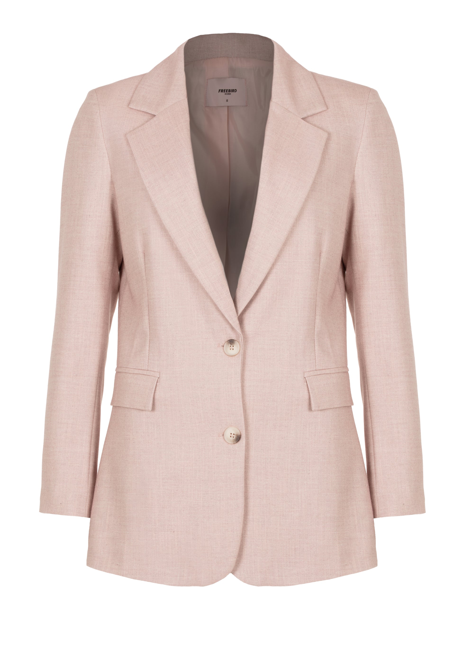 This blazer is crafted from a woven tailored quality, offering an elegant structure and a luxurious feel. The straight fit and single-breasted closure create a clean, sophisticated silhouette. The soft pink shade adds a subtle feminine touch, making this blazer perfect for both professional looks and elevated everyday styling.