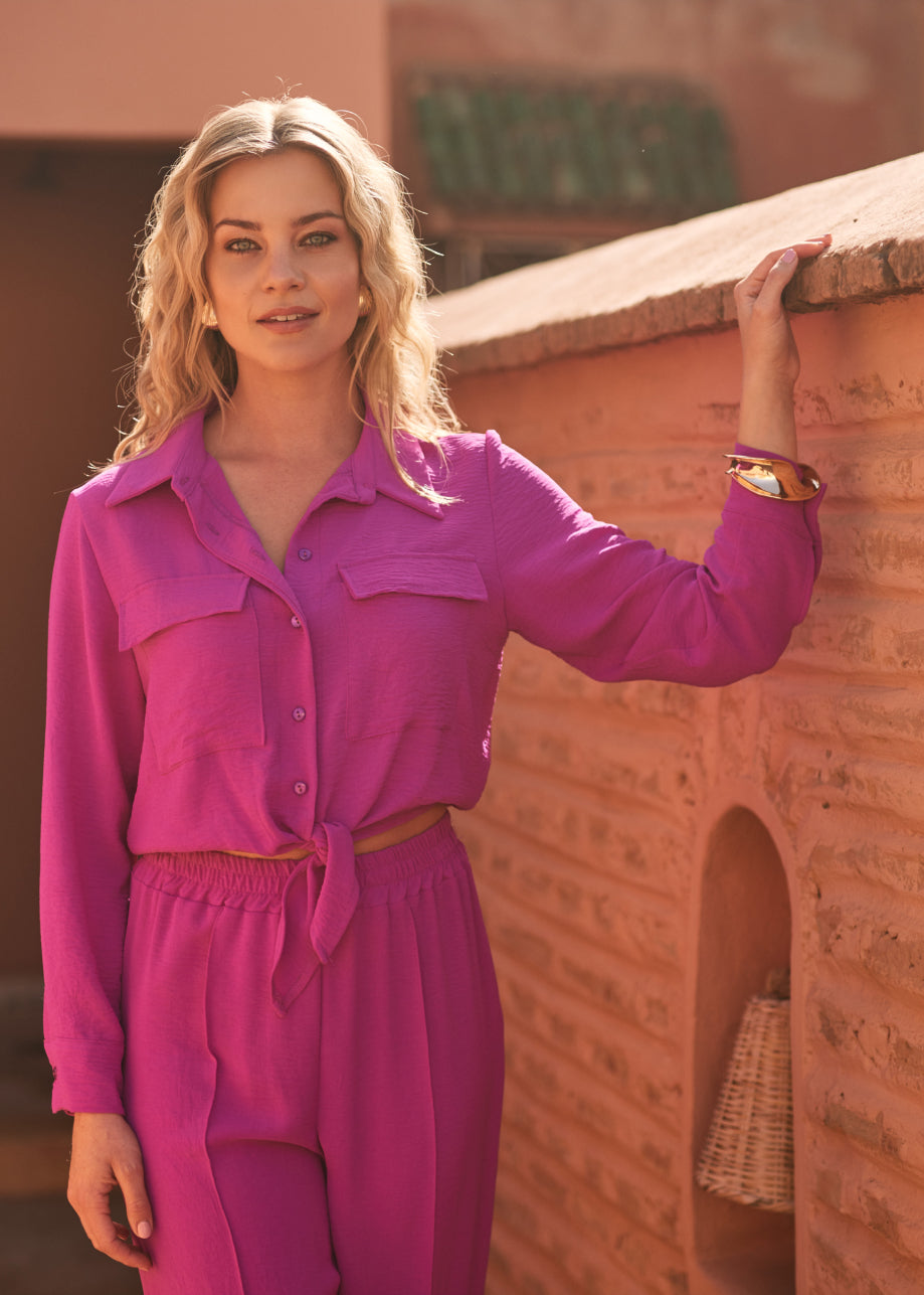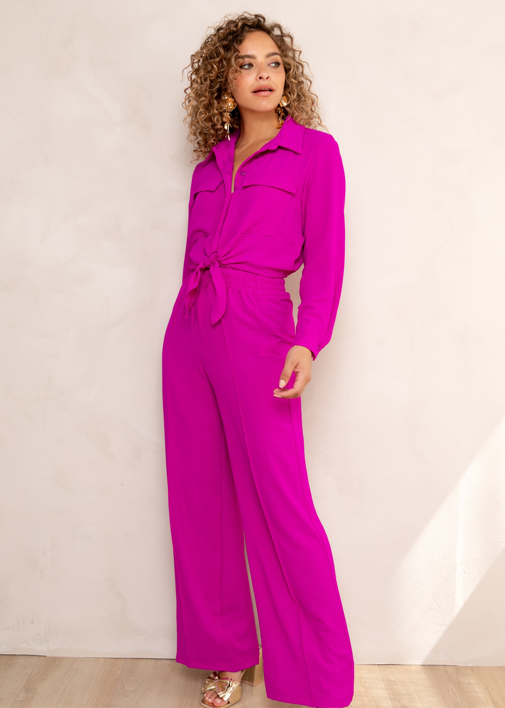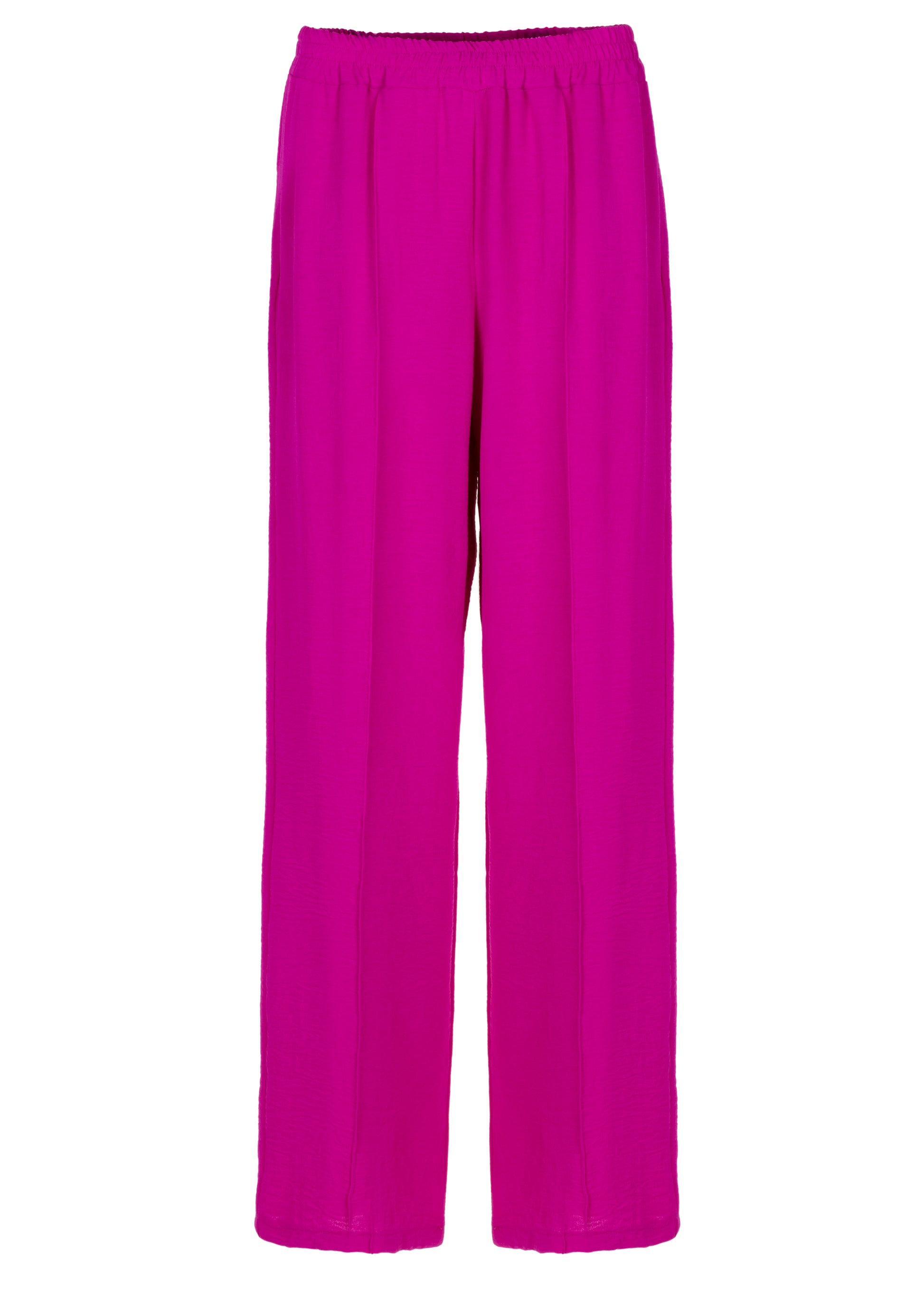 Add a touch of style and comfort to your wardrobe with these wide-leg trousers. Made from a textured polyester fabric, these trousers combine a modern look with a comfortable fit. The elastic waistband ensures a perfect fit, while the pintuck detail at the front adds a refined touch.