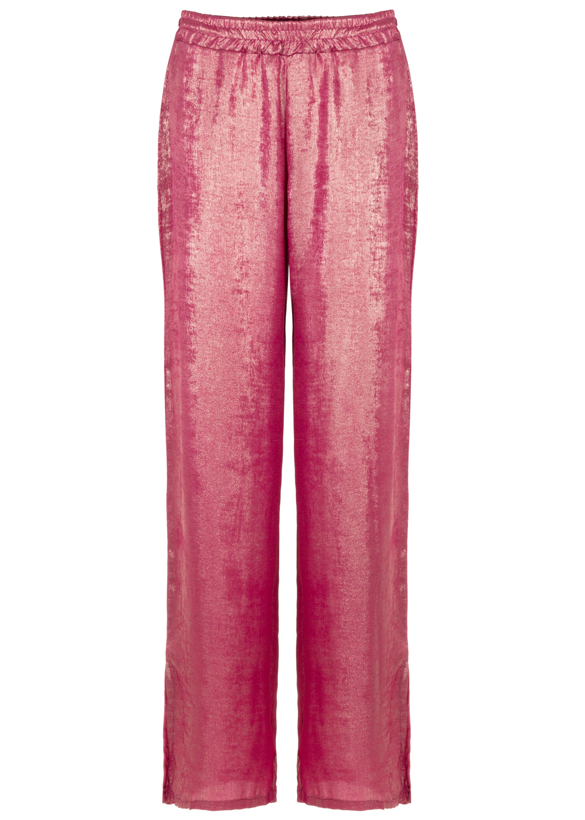 Add a touch of glamour to your look with these stunning trousers in a striking orchid pink hue. The elastic waistband ensures a perfect fit, while the wide legs create a stylish and airy silhouette.