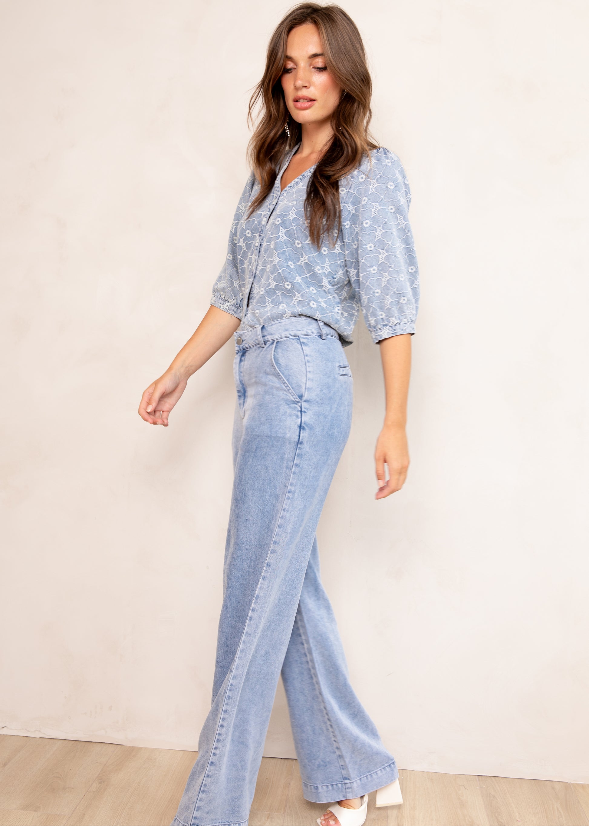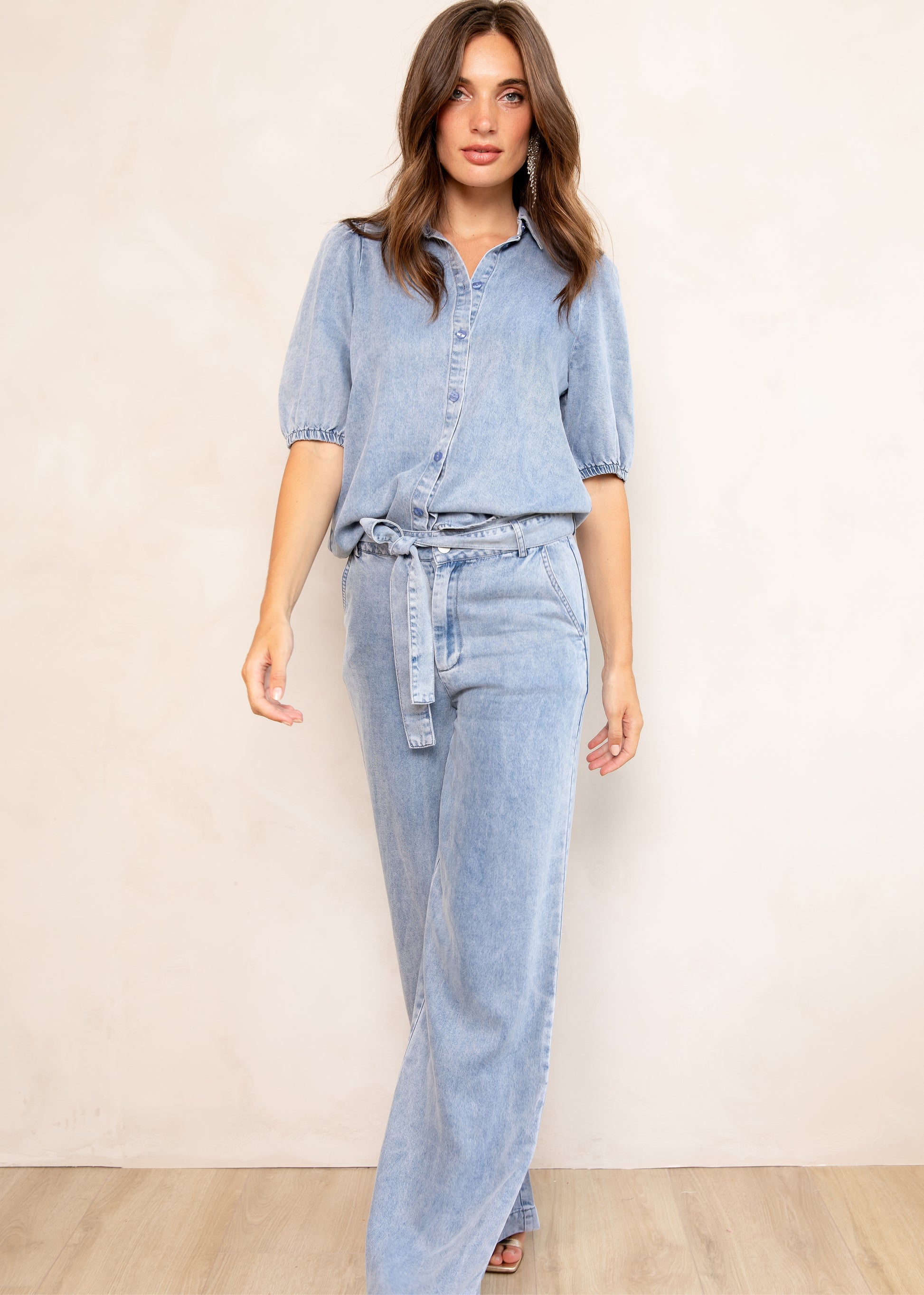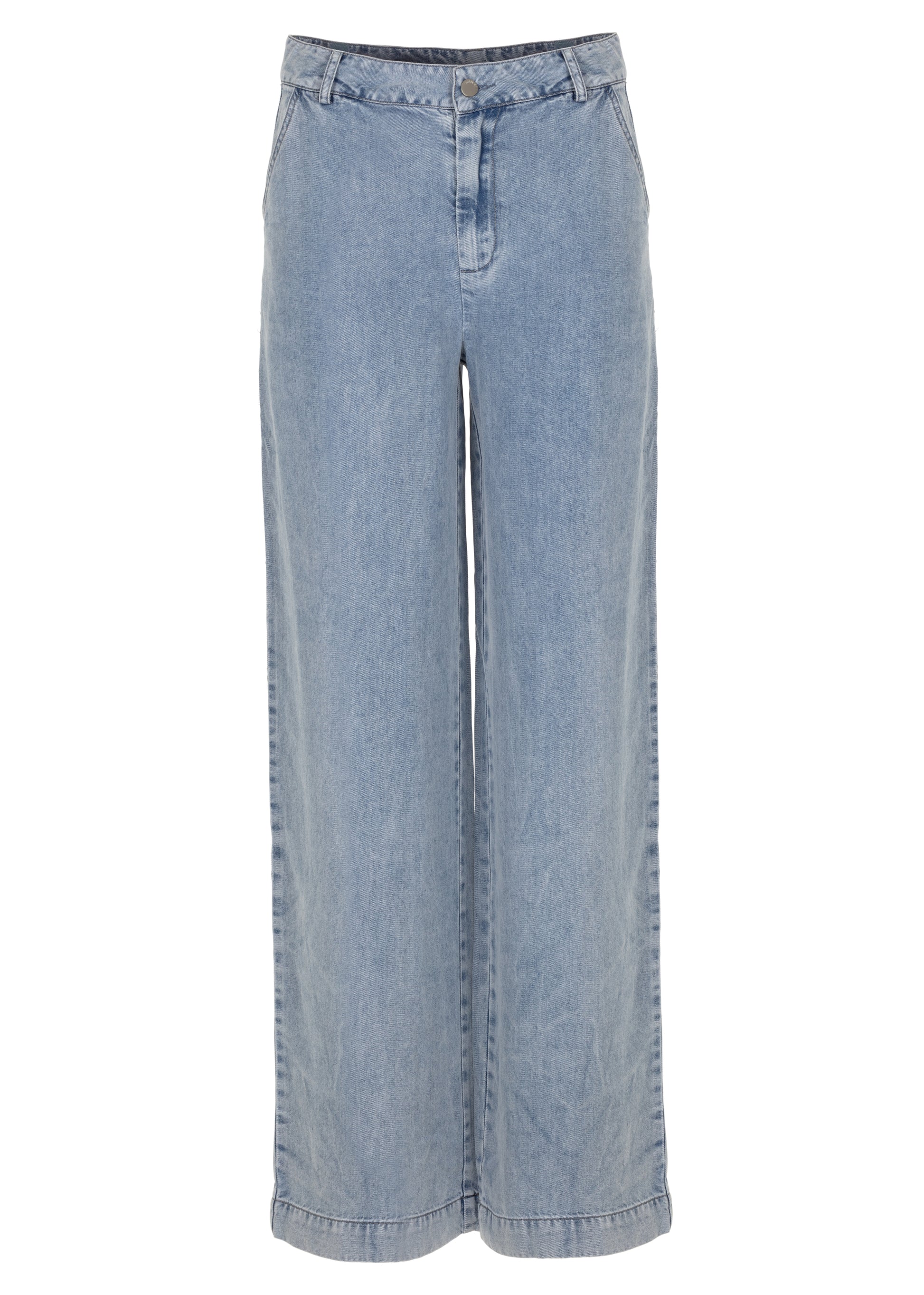 This elegant wide-leg trouser is made from fluid Tencel, ensuring a breezy and comfortable fit. The trousers feature a timeless silhouette with subtle details.