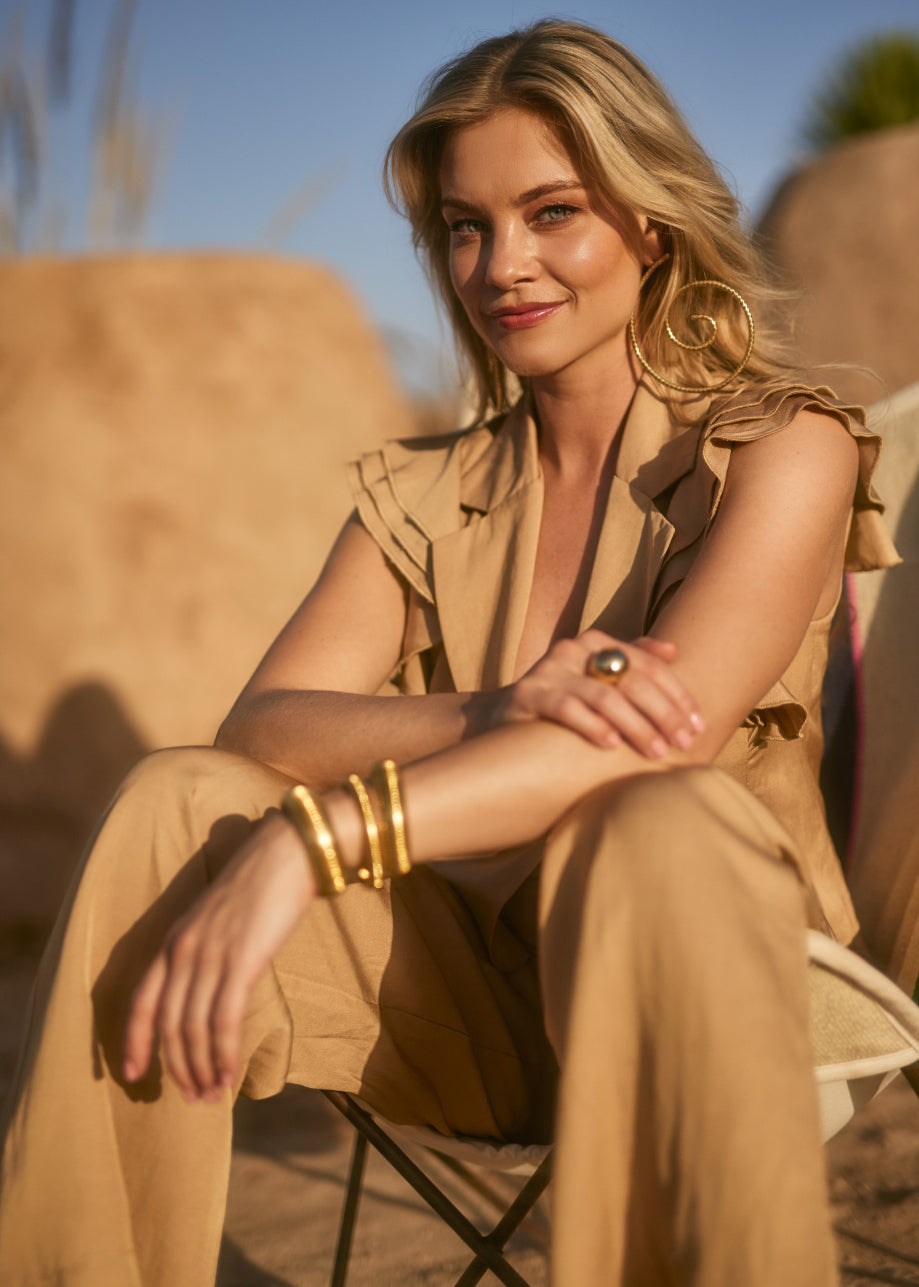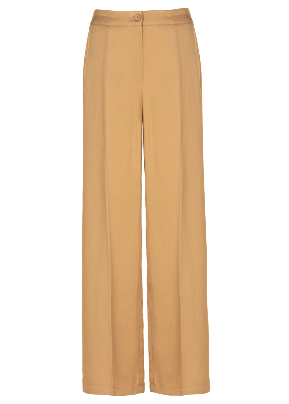 This high-rise trouser is made from a fluid viscose-linen blend with a subtle sheen, giving it an elegant and feminine look. The elastic waistband at the back ensures extra comfort and a flattering fit. Thanks to the straight legs and timeless design, these trousers can be worn both casually and chic. Pair it with the matching Gabriela blazer for a complete set.