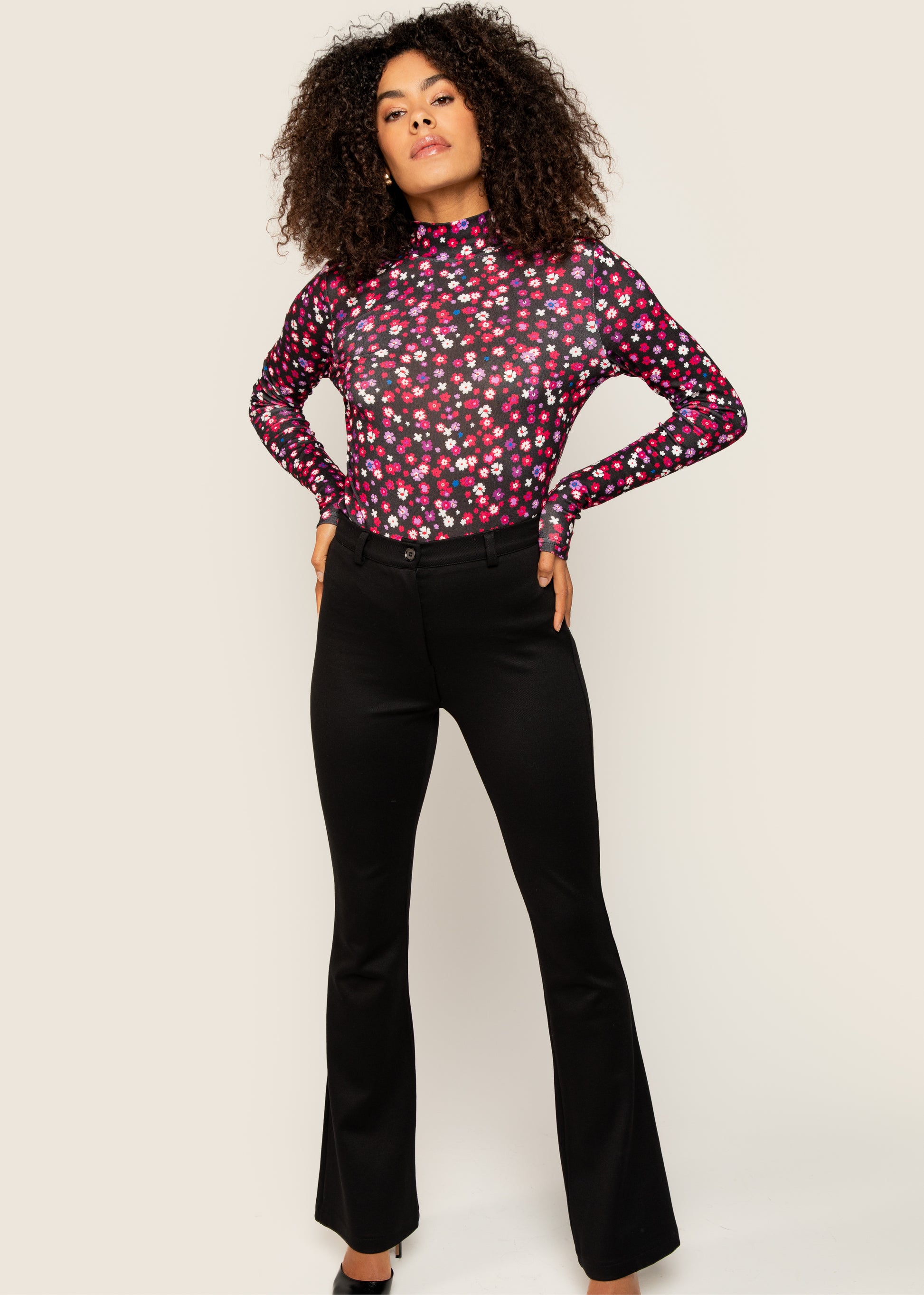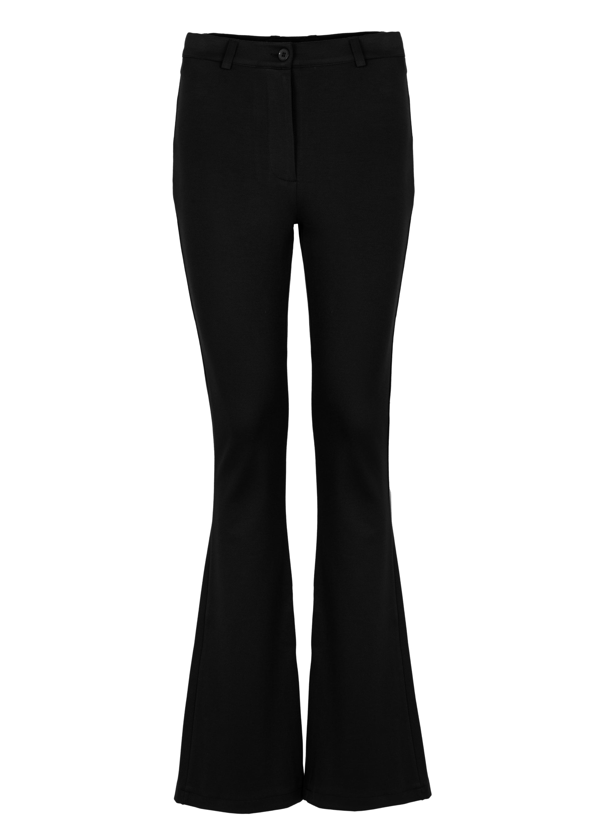These pants are made from a comfortable viscose fabric with stretch, ensuring a perfect fit. The flared model provides a fashionable and elegant look, ideal for various occasions.