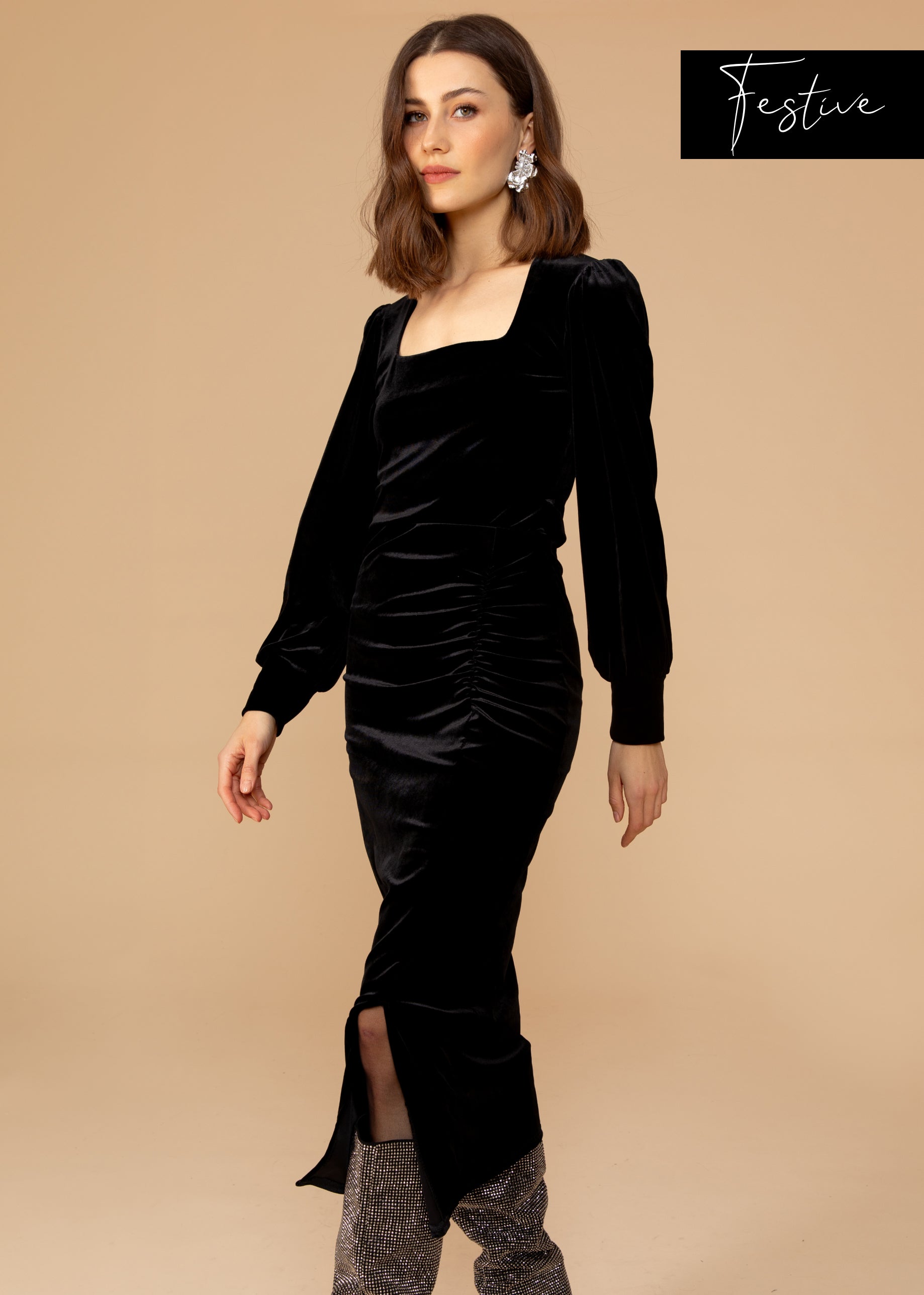 This elegant skirt is made from a luxurious jersey velvet fabric that feels soft and wears comfortably. The skirt features a fitted silhouette that beautifully accentuates your figure and is detailed with a stylish side slit. The elastic waistband ensures a perfect fit and optimal comfort.