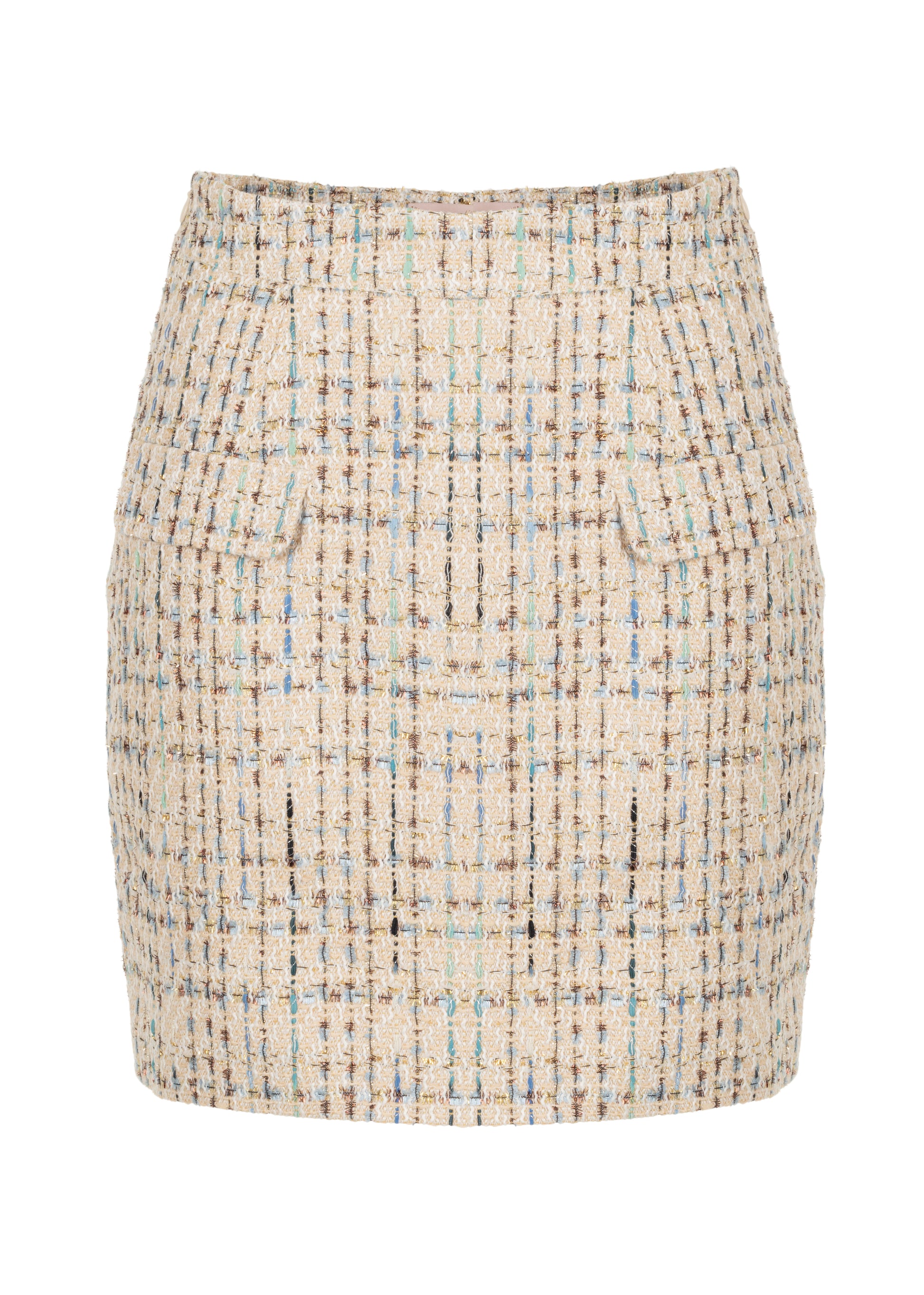 Give your outfit a chic upgrade with this fashionable short skirt. Made from a high-quality bouclé fabric with subtle lurex accents and colorful details, this skirt exudes elegance and style. The side zipper ensures a comfortable fit, making it perfect for both everyday and formal occasions.