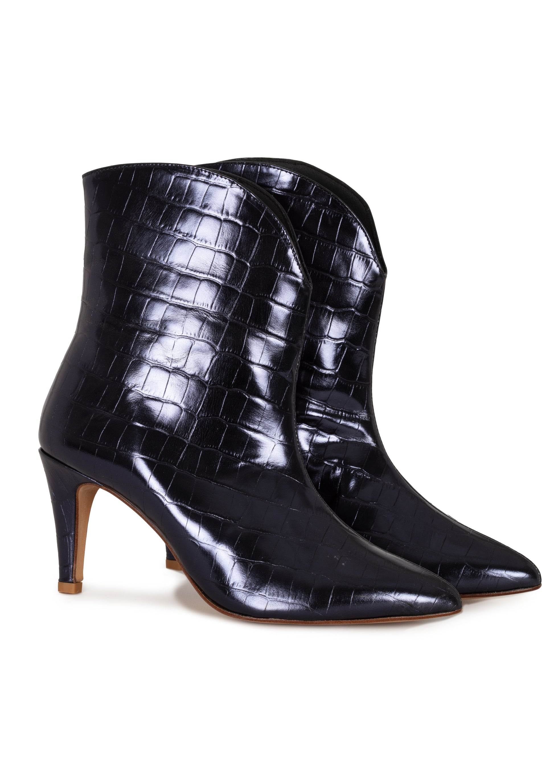 These stylish ankle boots, made of 100% leather with a croco texture, offer both elegance and refinement. With a mid-height design and a heel height of 8 cm, they are perfect for adding a touch of class to any outfit.