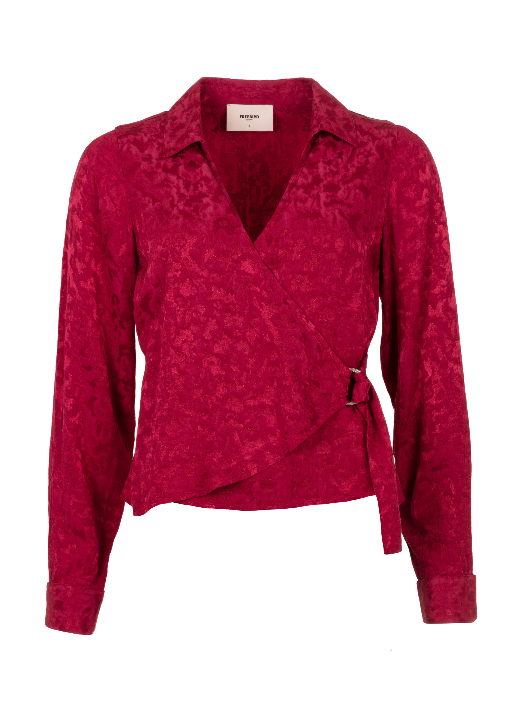 Geef je look een vrouwelijke upgrade met deze elegante overslagtop.