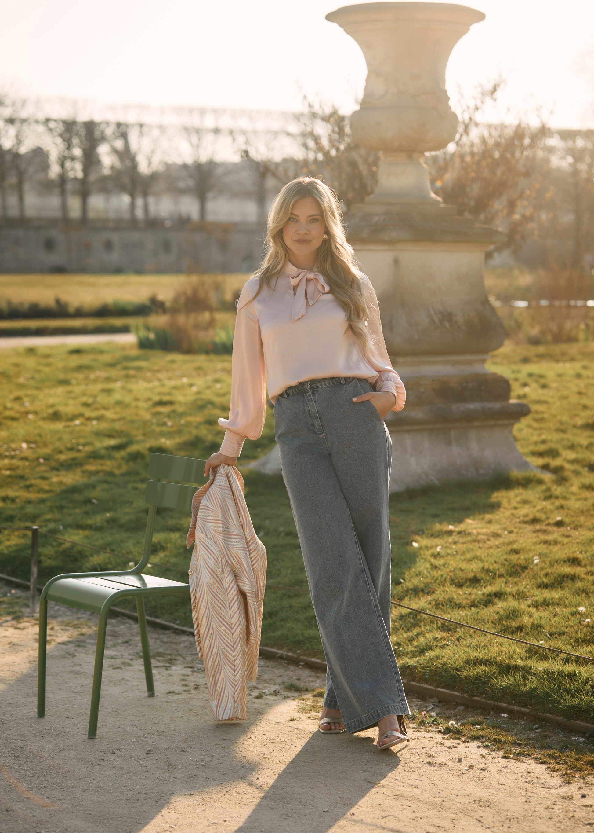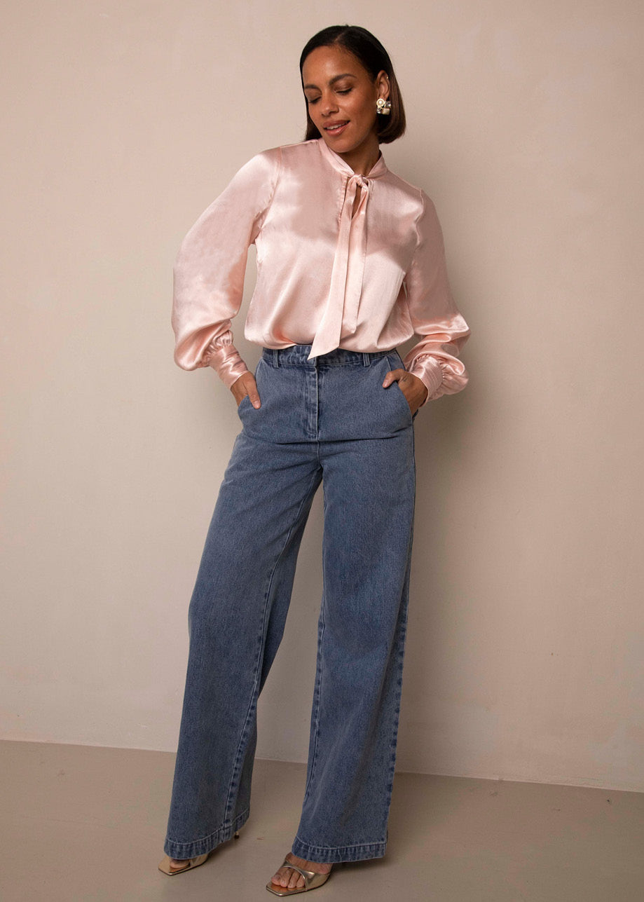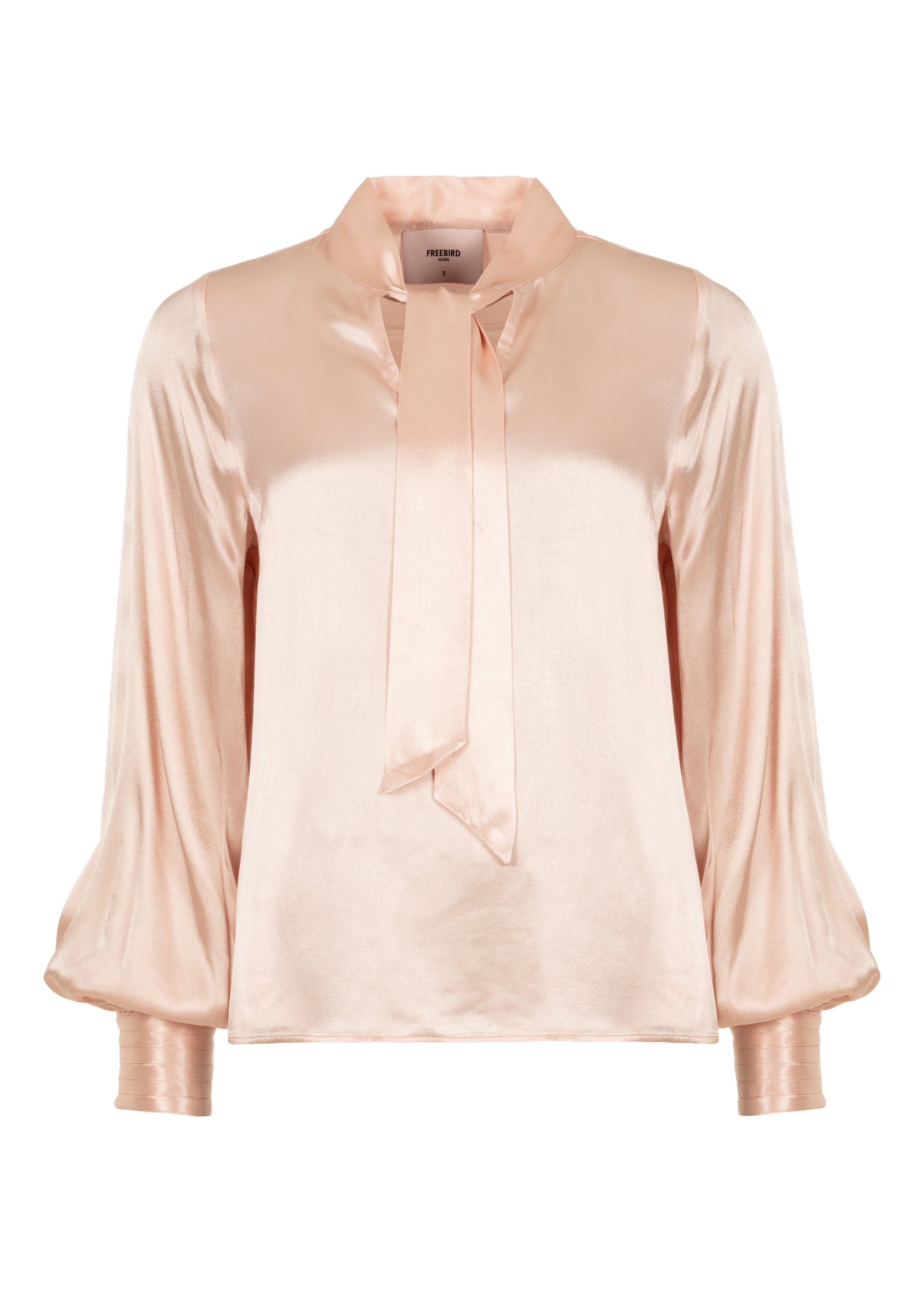 Deze blouse is vervaardigd uit een soepel vallende, glanzende stof met een luxe uitstraling. De ballonmouwen geven het ontwerp een speels volume, terwijl de strik aan de kraag zorgt voor een chique en vrouwelijke afwerking. Een veelzijdig item dat moeiteloos overgaat van kantoor naar dinerdate.