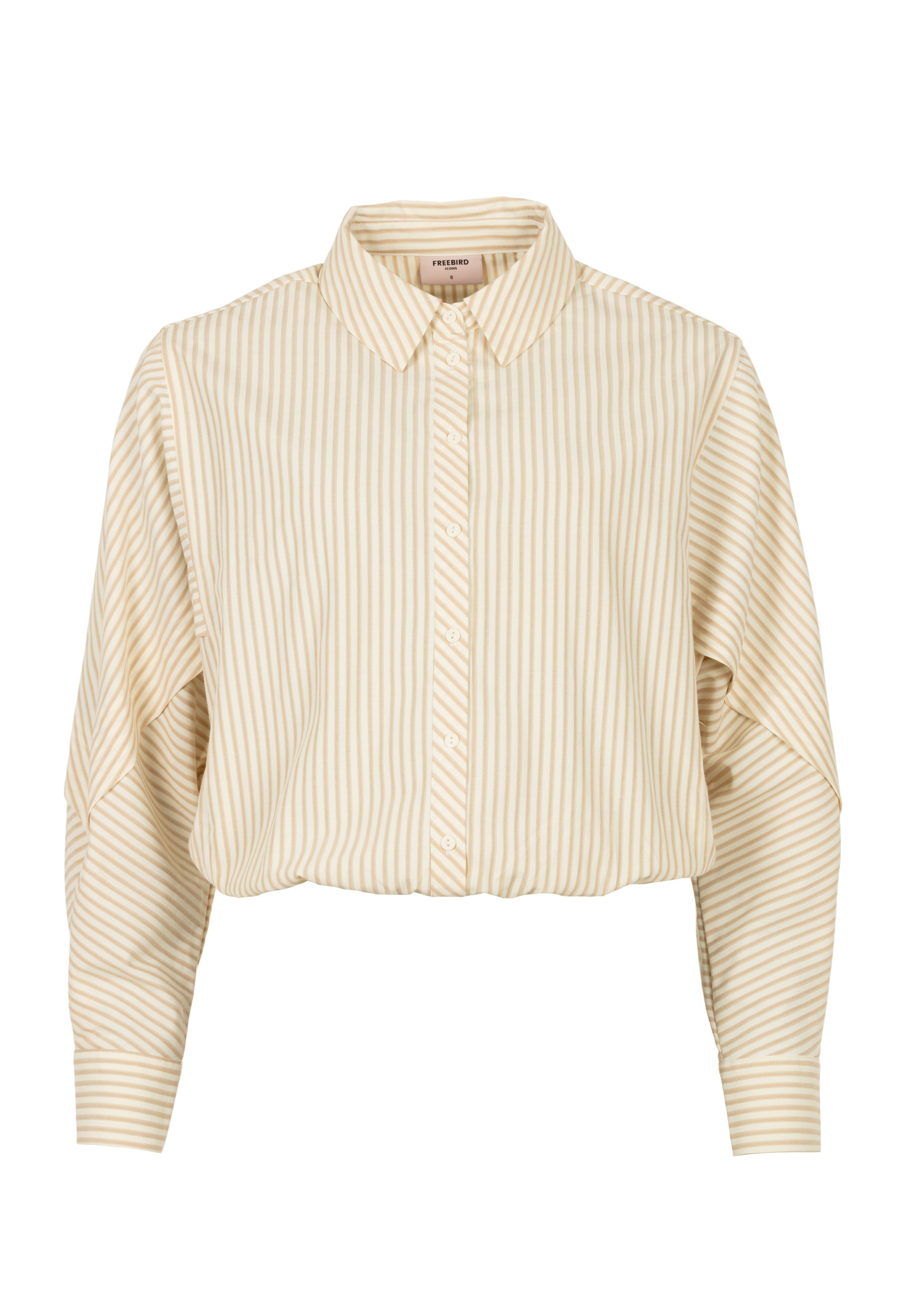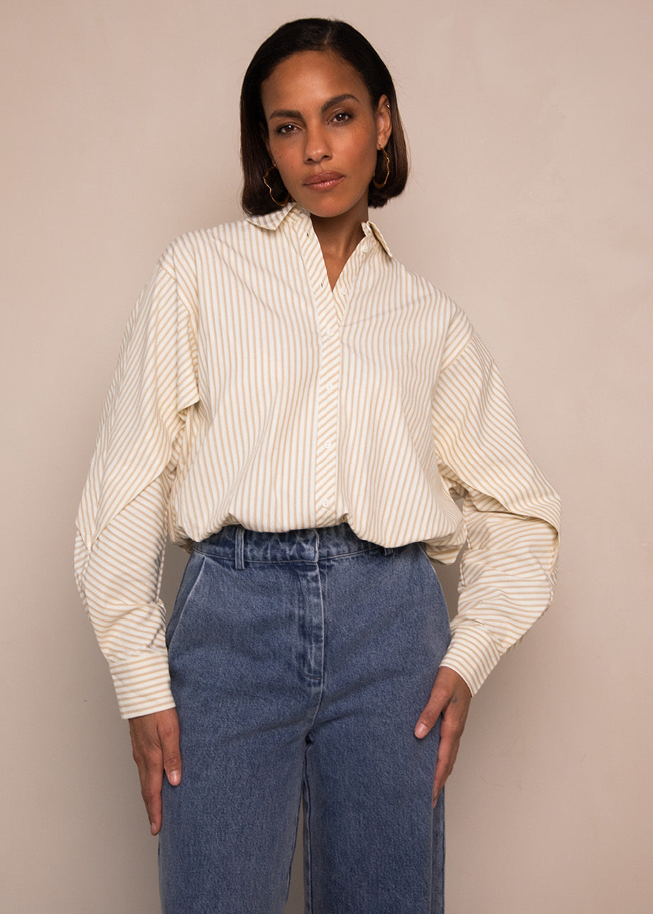 De Blair blouse is gemaakt van een comfortabele katoenmix met een verfijnd streepdessin in off-white en camel. Het item is een tijdloze toevoeging aan je garderobe. De lange mouwen en de elastische afwerking aan de onderzijde zorgen voor een speels silhouet en een flatterende pasvorm.