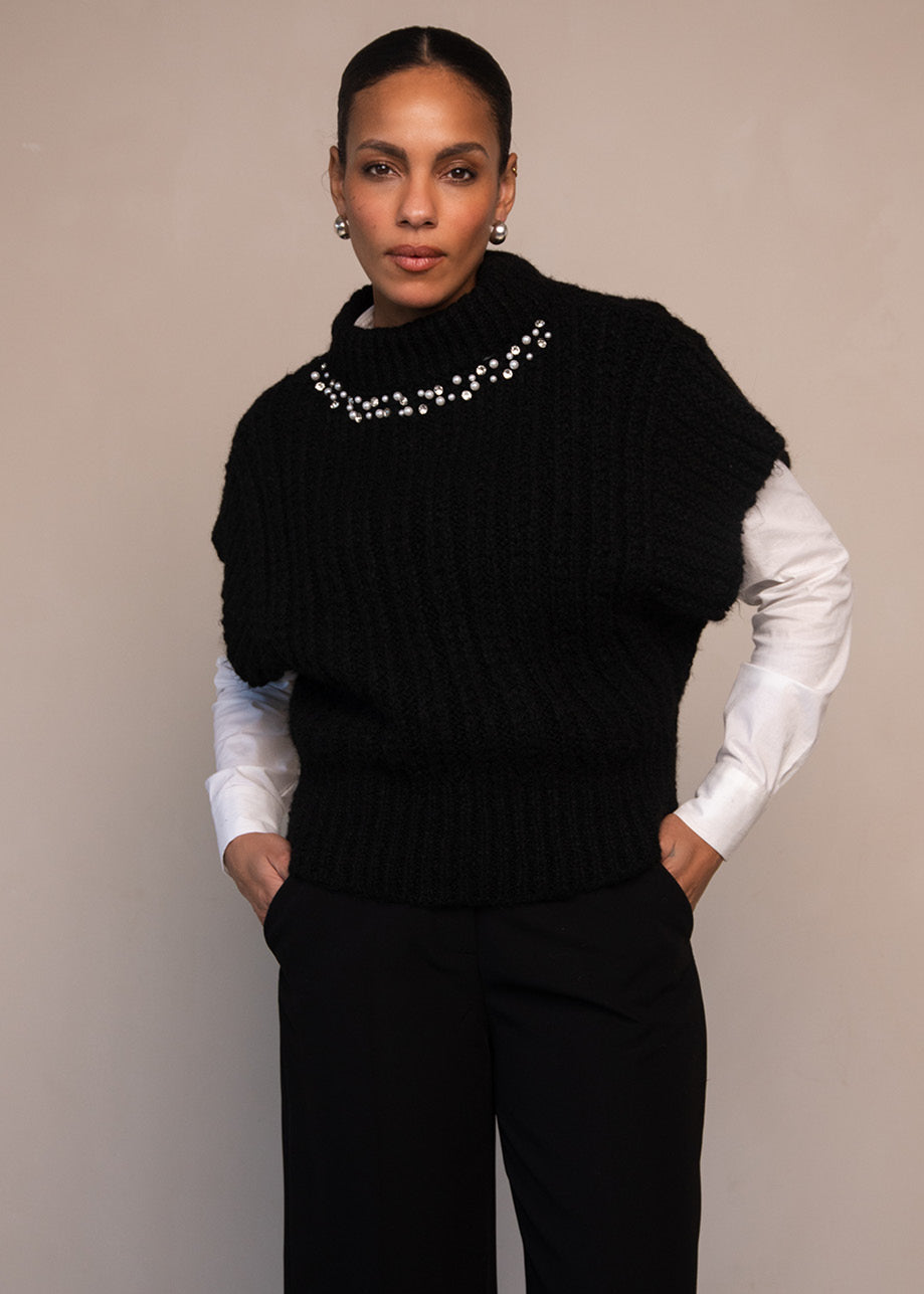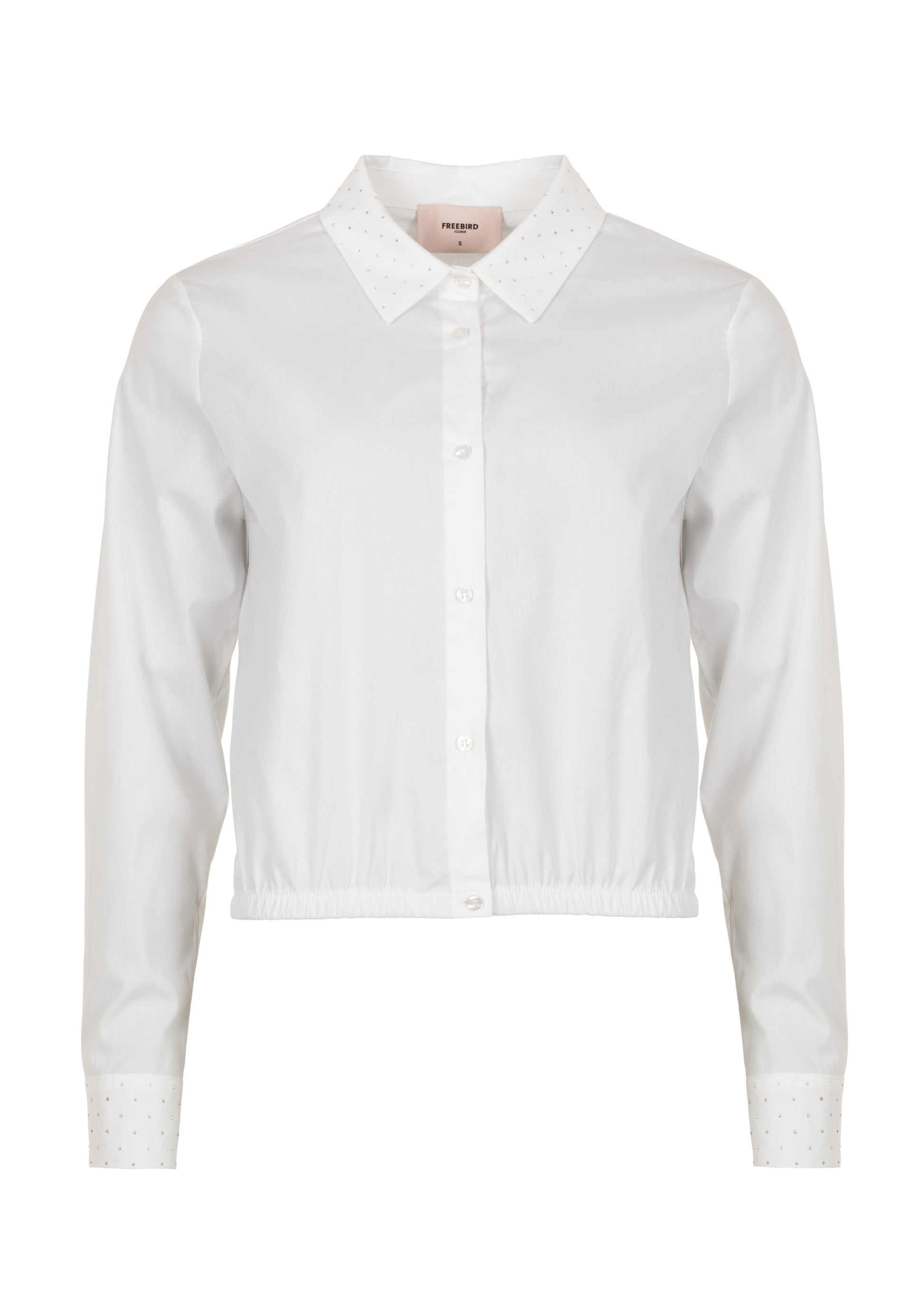 De Breelyn Blouse is een verfijnde klassieker met een moderne twist. Uitgevoerd in een stevige katoen poplin kwaliteit, biedt deze blouse structuur én comfort. De lange mouwen en rechte pasvorm worden geaccentueerd door een elastische tunnel in de taille voor een subtiel getailleerd effect. De strasssteentjes op de kraag en manchetten zorgen voor een sprankelend detail dat een vleugje glamour toevoegt aan deze tijdloze stijl.