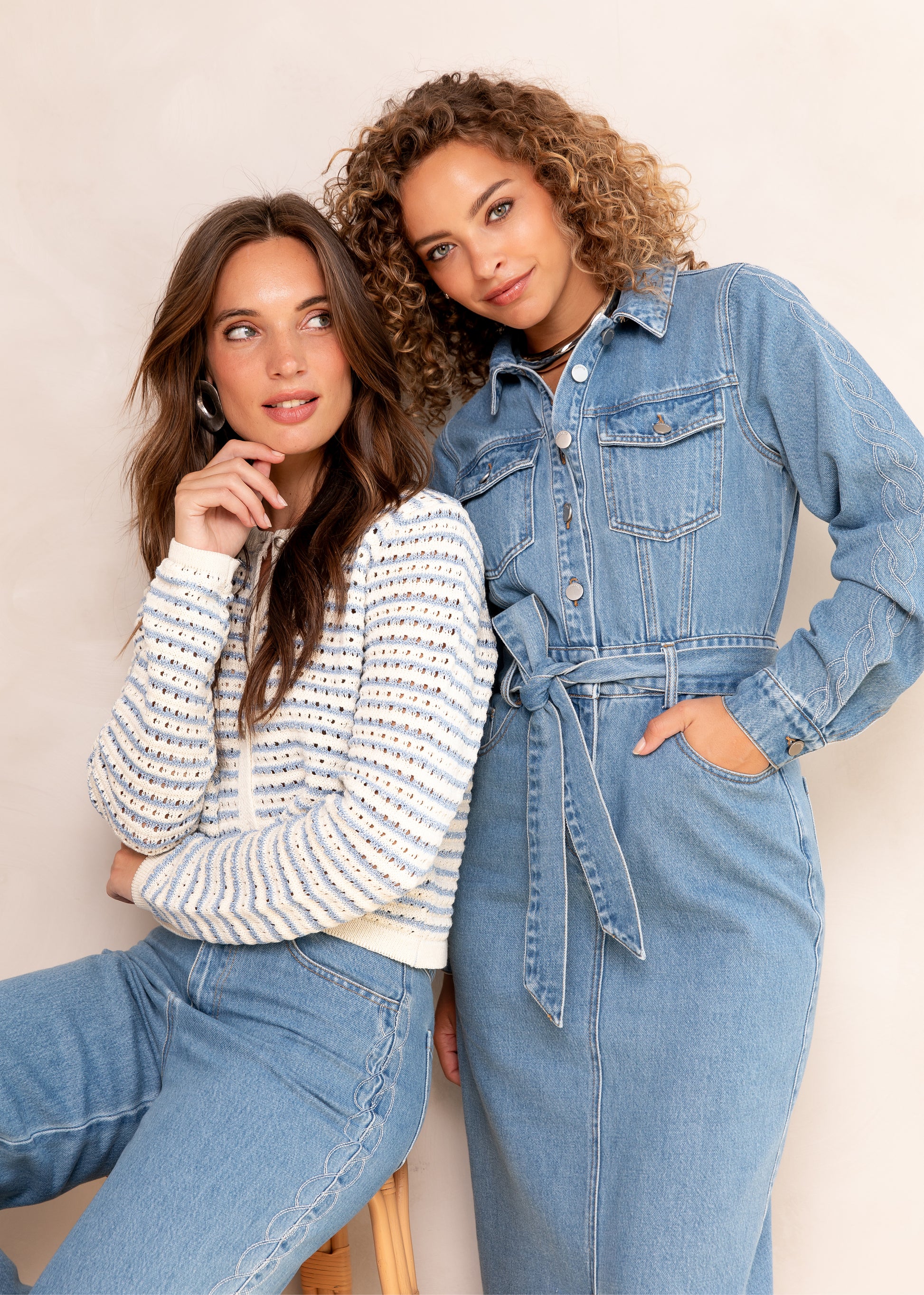- Blauwe denimkwaliteit met borduursels en lichte wassing