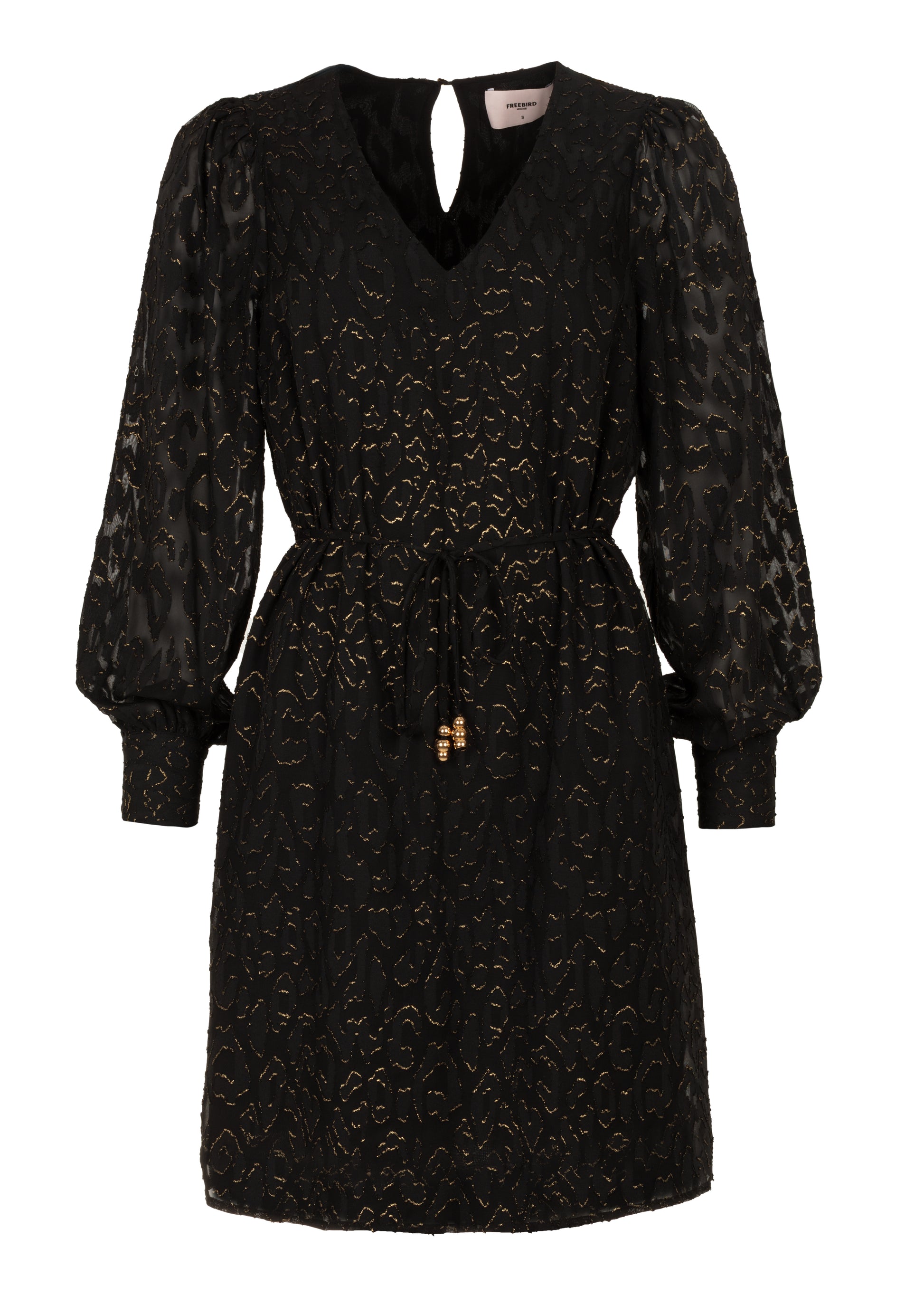 Gemaakt van een verfijnde geweven jacquardstof met een subtiel luipaardpatroon, waardoor de jurk een luxueuze uitstraling krijgt.