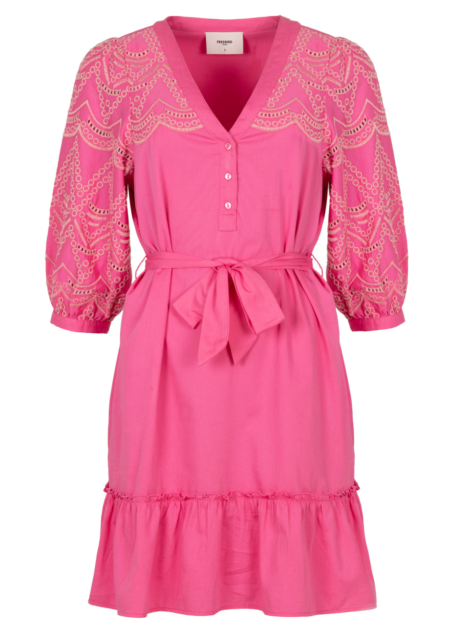 - Het jurkje komt met een ceintuur om de heupen te accentueren.