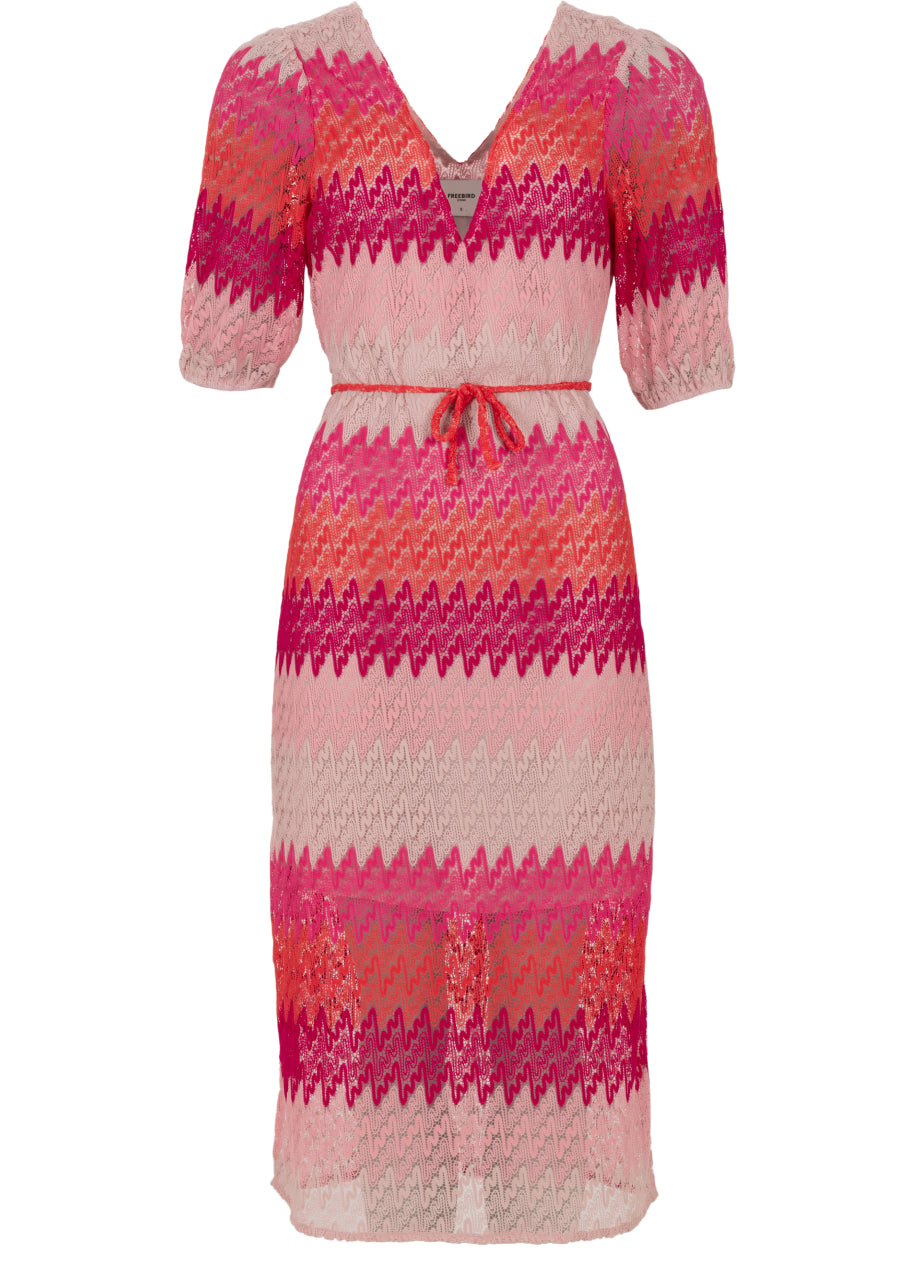 - Roze jurk met een zigzag print en verschillende kleuren.