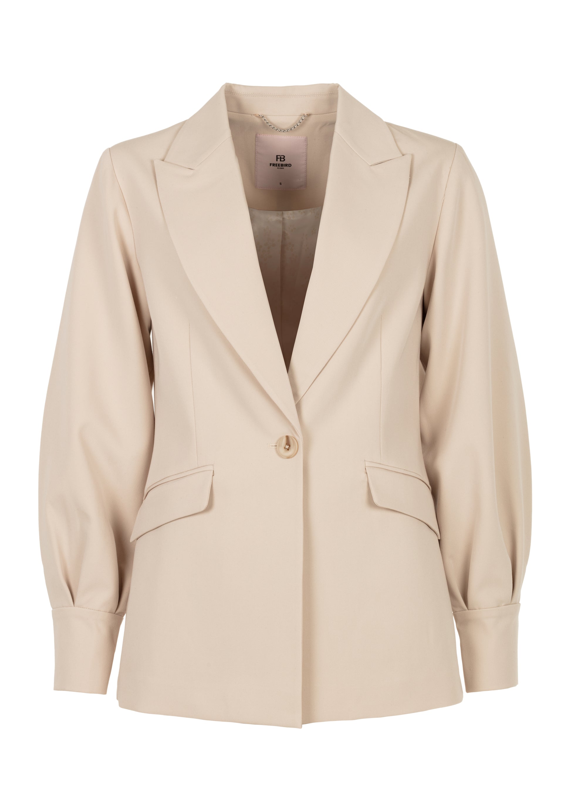 Deze elegante blazer in een zachte beige. Het double-breasted ontwerp en de subtiele pofmouwen zorgen voor een unieke, stijlvolle uitstraling. Perfect te combineren met zowel een zakelijke look als een casual outfit.