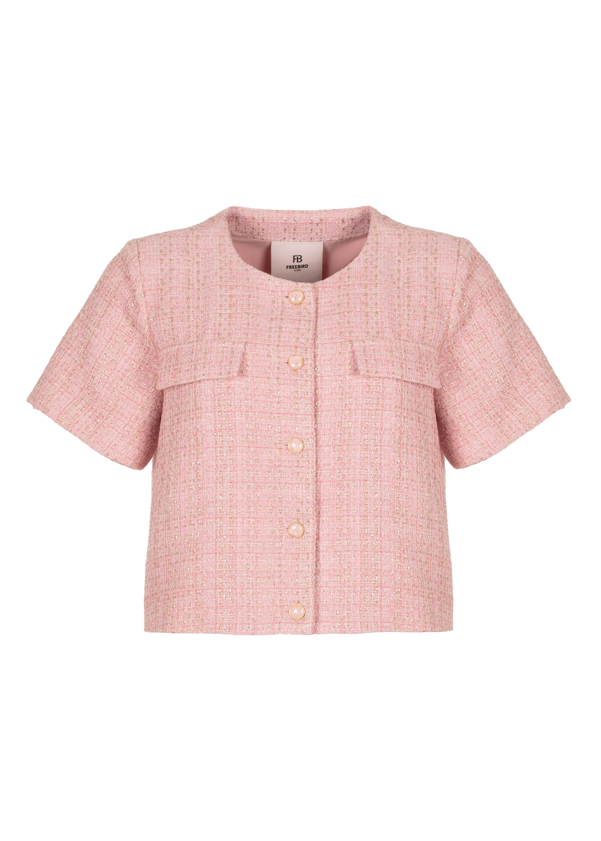 Een verfijnd blazertje met een elegante uitstraling. Dit blazertje is uitgevoerd in een geweven bouclé kwaliteit zonder stretch, wat zorgt voor een mooie, gestructureerde fit. De sierknoopjes geven het item een klassieke touch, terwijl de borstzakjes het geheel een stijlvolle en verzorgde look geven. Een veelzijdig item dat zowel casual chic als gekleed te dragen is.