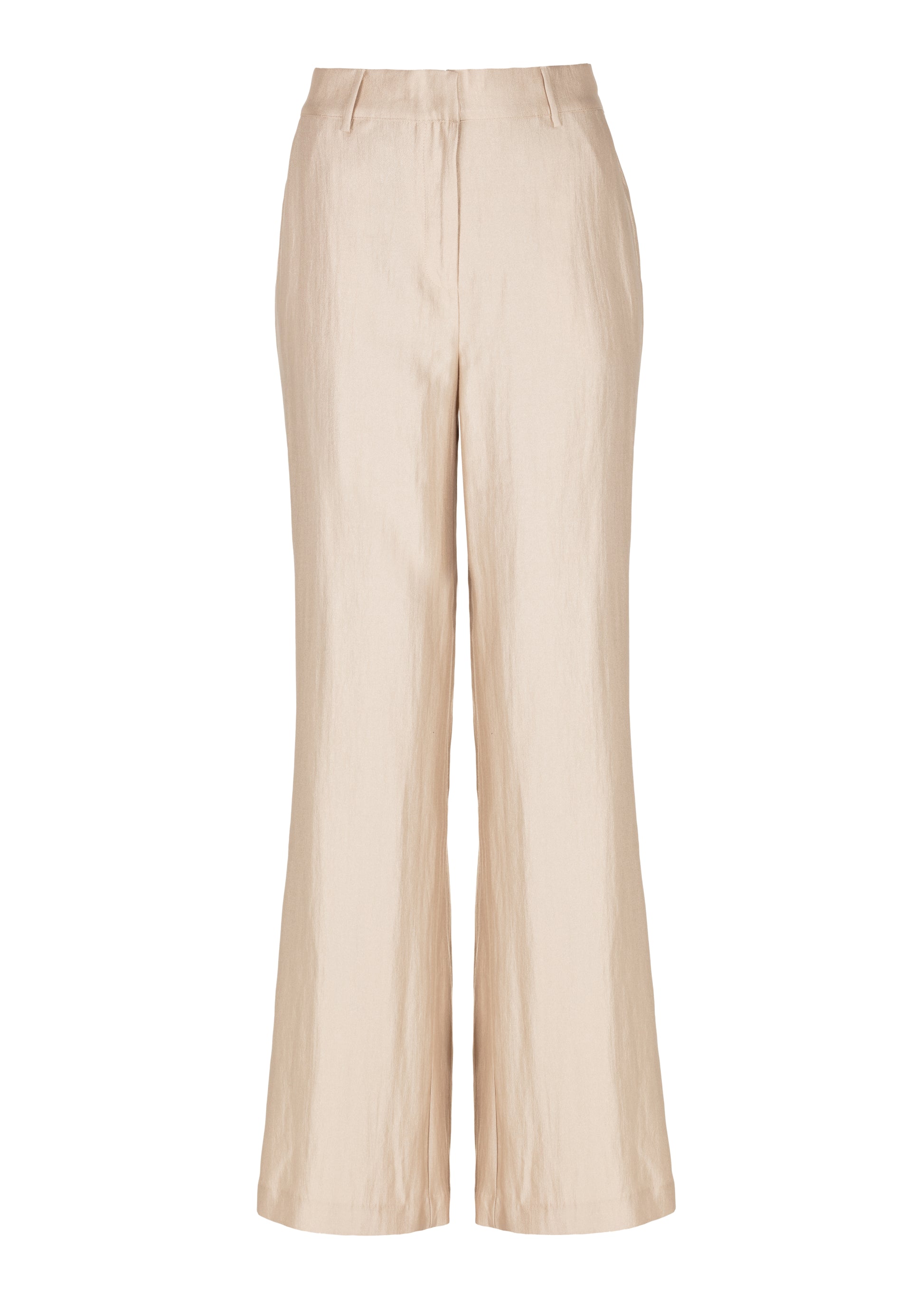 De broek is gemaakt van een verfijnde woven kwaliteit met een subtiele glans, wat zorgt voor een chique en moderne look. De wijde pijpen creëren een vloeiend silhouet, terwijl de elastische band aan de achterkant extra comfort biedt. Afgewerkt met paspelzakken voor een nette en tijdloze uitstraling. Perfect voor zowel formele als feestelijke gelegenheden.