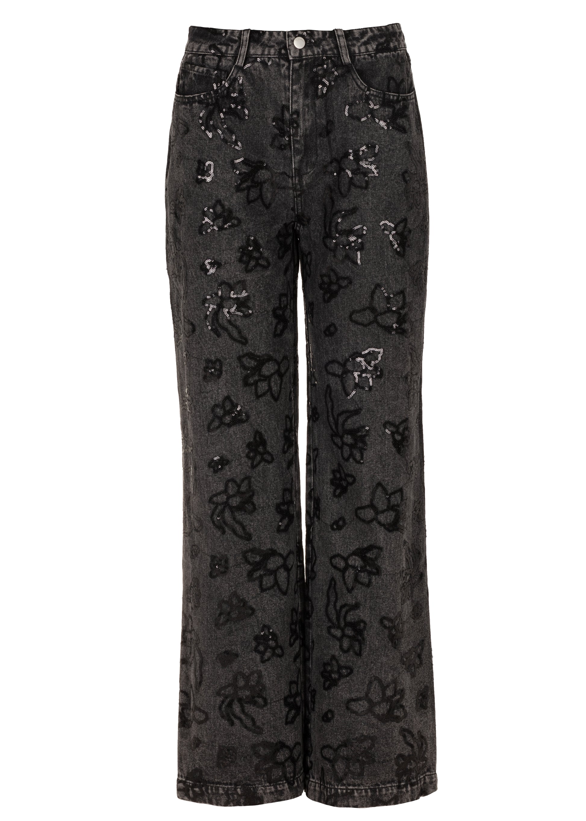 Een trendy denim broek met een stijlvolle, feestelijke touch.