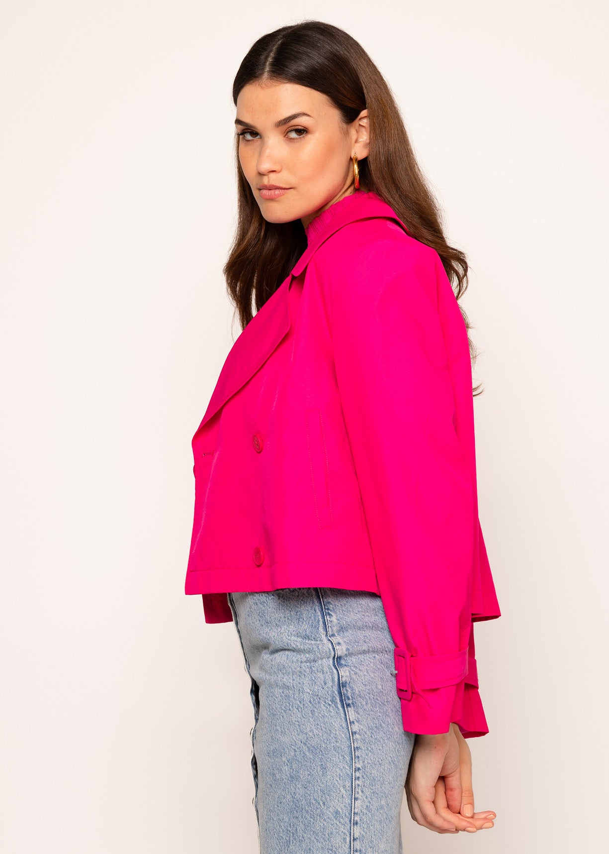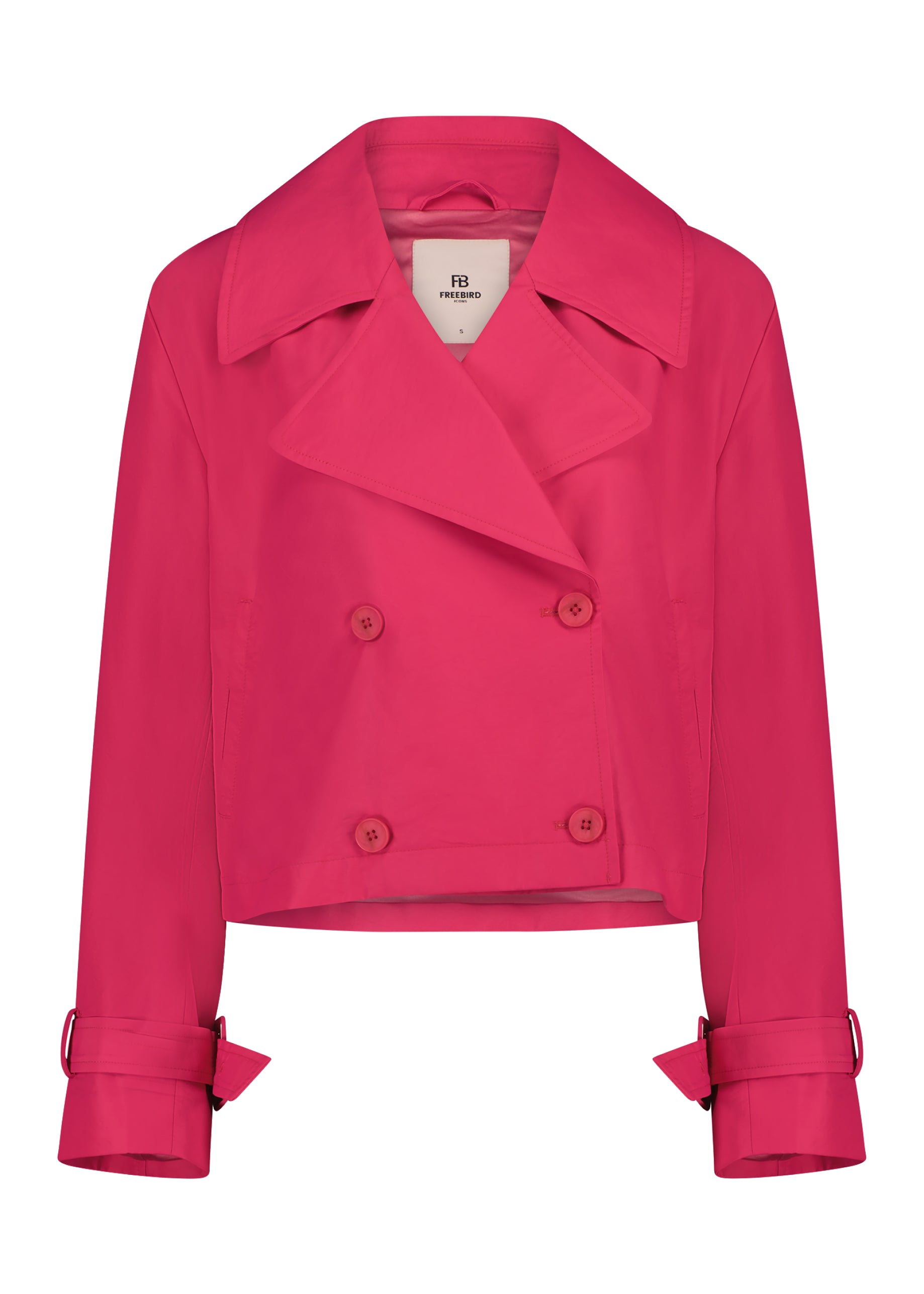 - De jas is afgewerkt met straps aan de mouwen en is double breasted.