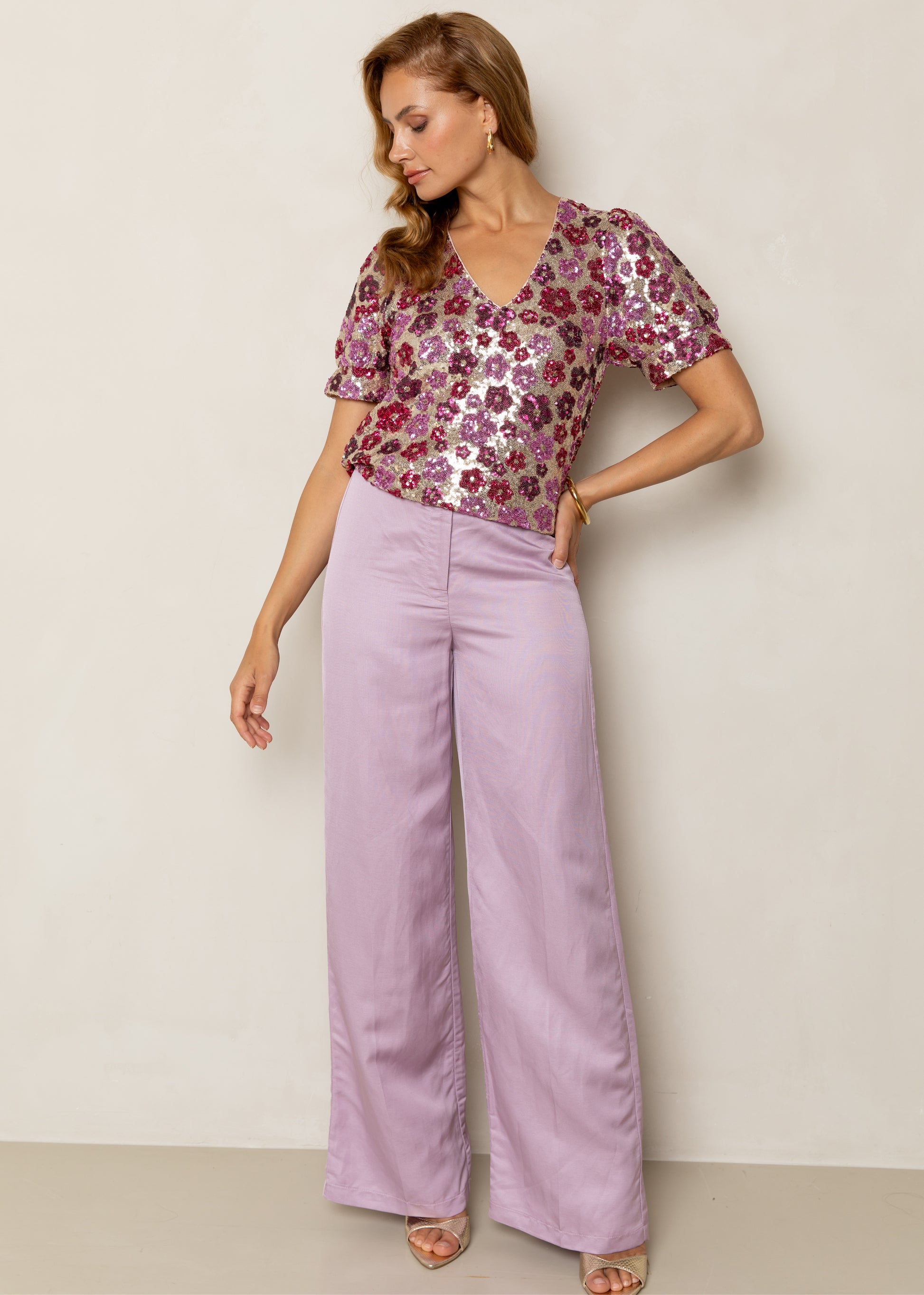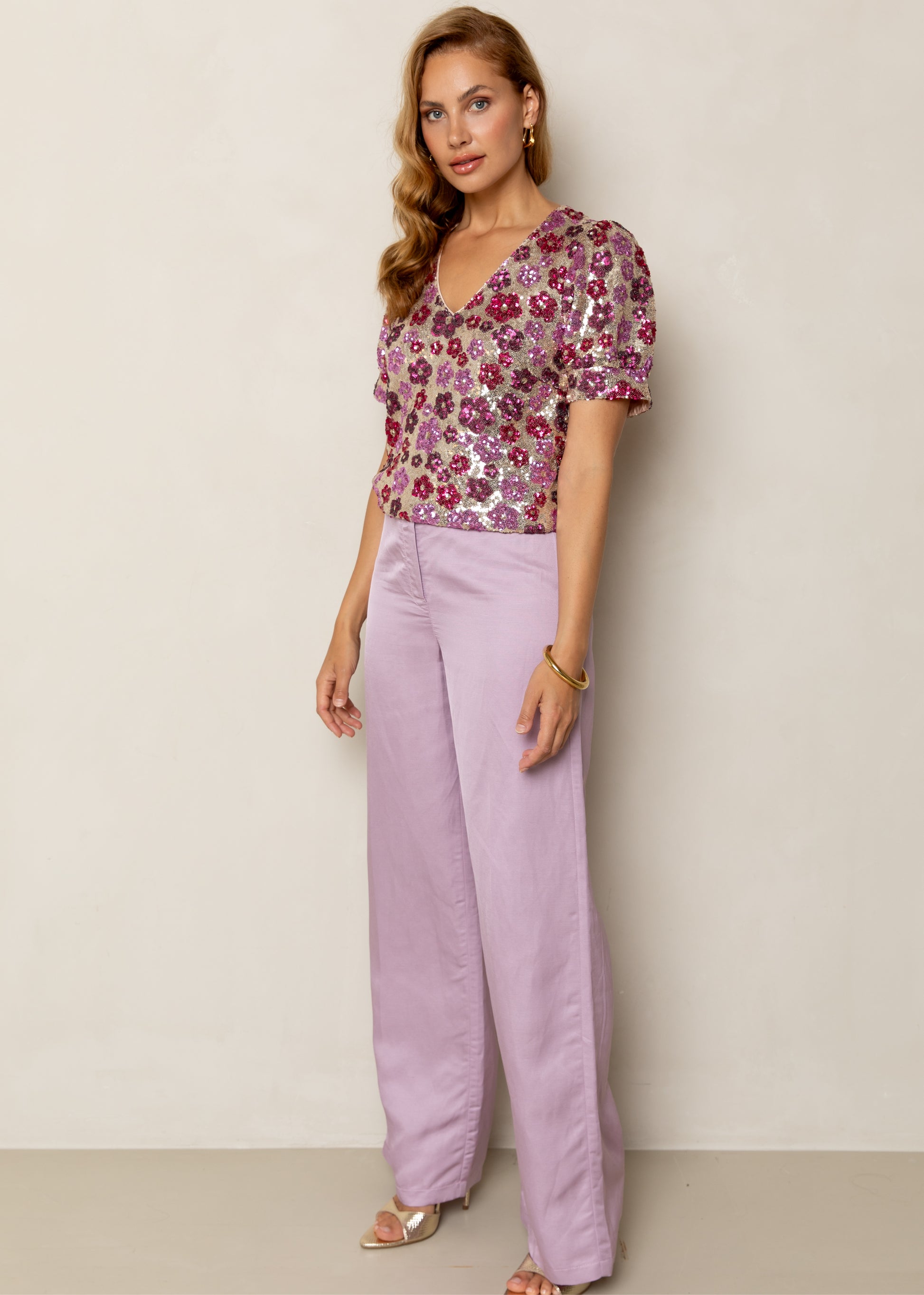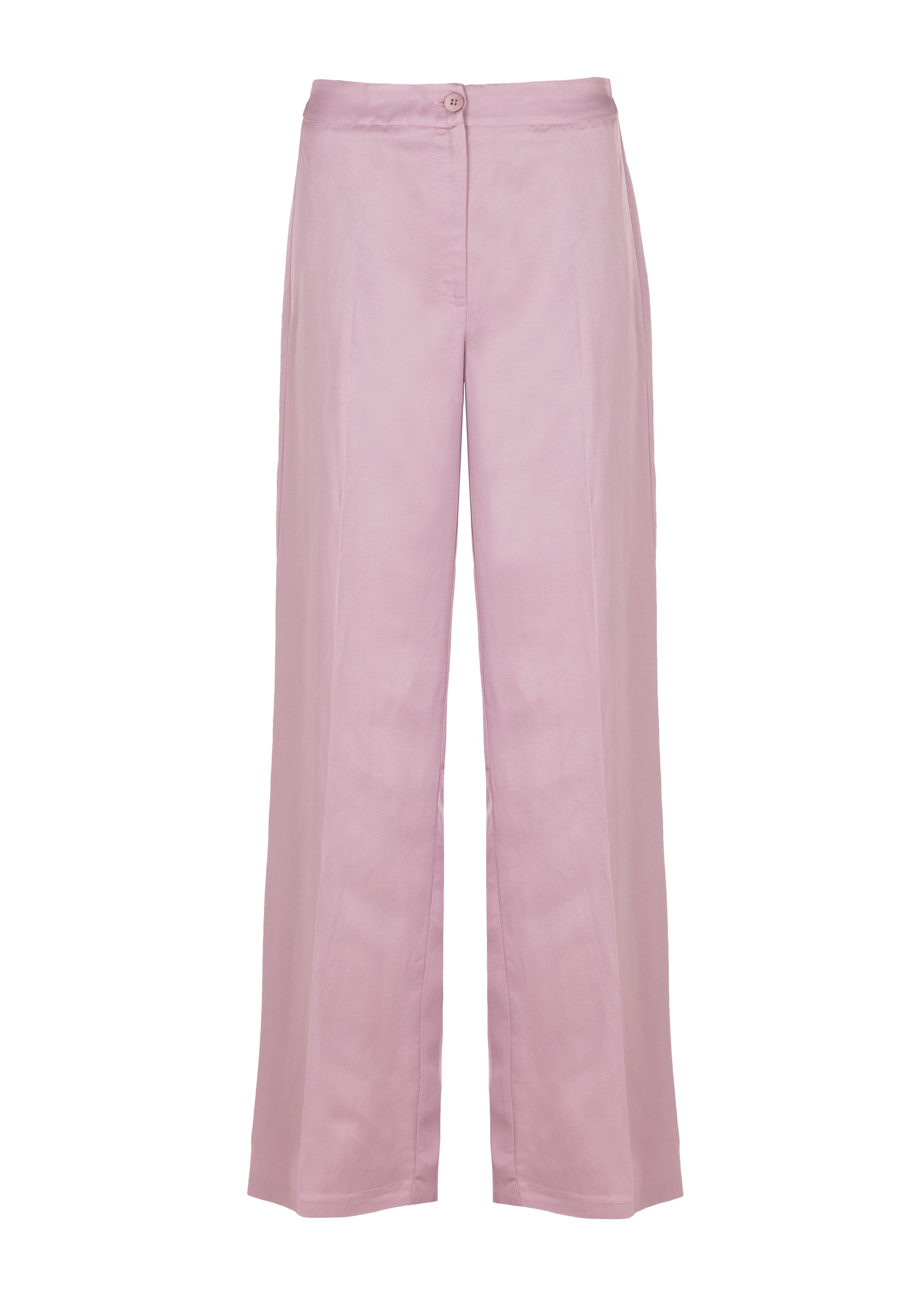 Deze high-rise pantalon is gemaakt van een soepelvallende viscose-linnen blend met een subtiele glans, wat zorgt voor een elegante en vrouwelijke uitstraling. De elastische waistband aan de achterkant zorgt voor extra draagcomfort en een mooie pasvorm. Dankzij de rechte pijpen en het tijdloze ontwerp is deze pantalon zowel casual als chic te dragen. Combineer met de bijpassende Gabriela blazer voor een complete set.