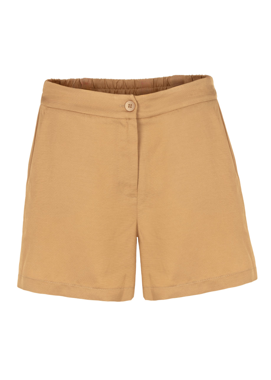 Deze high-rise shorts zijn vervaardigd uit een soepelvallende viscose-linnen blend met een subtiele glans, wat zorgt voor een elegante en comfortabele uitstraling. De elastische waistband aan de achterkant biedt extra draagcomfort en een perfecte pasvorm. De shorts kunnen zowel casual als chic gedragen worden. Combineer ze met de bijpassende Gabriela blazer voor een complete en stijlvolle set.