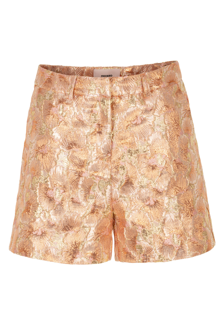 Deze klassieke short is gemaakt van een feestelijke jacquard stof met luxe lurex-details, die zorgen voor een subtiele glans en een stijlvolle uitstraling. De short heeft een tijdloos ontwerp met elegante paspelzakken aan de achterkant, wat het geheel een verfijnde en chique look geeft. Perfect te combineren met zowel een nette blouse als het bijpassende jasje voor een complete set.