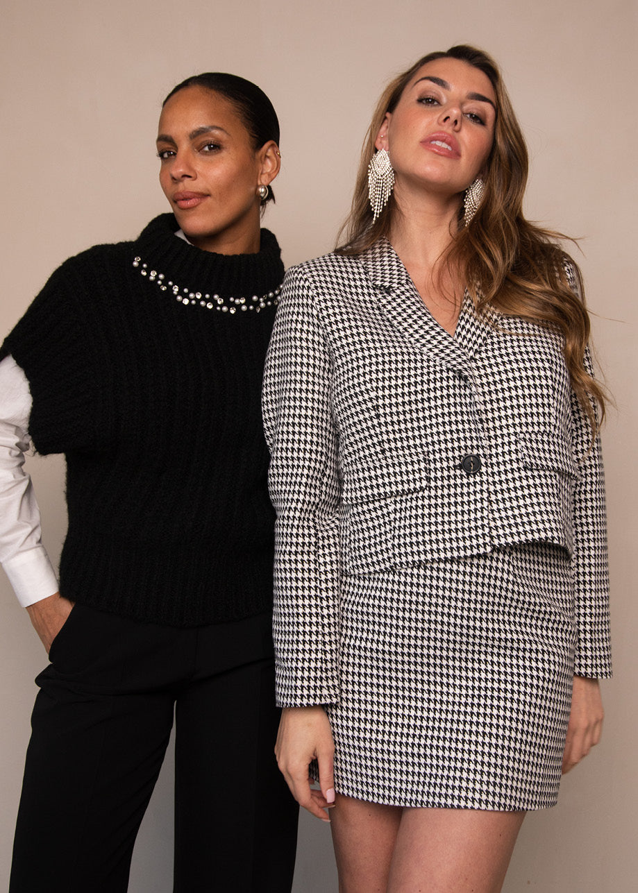 Geef je look een klassieke twist met deze pied-de-poule rok.