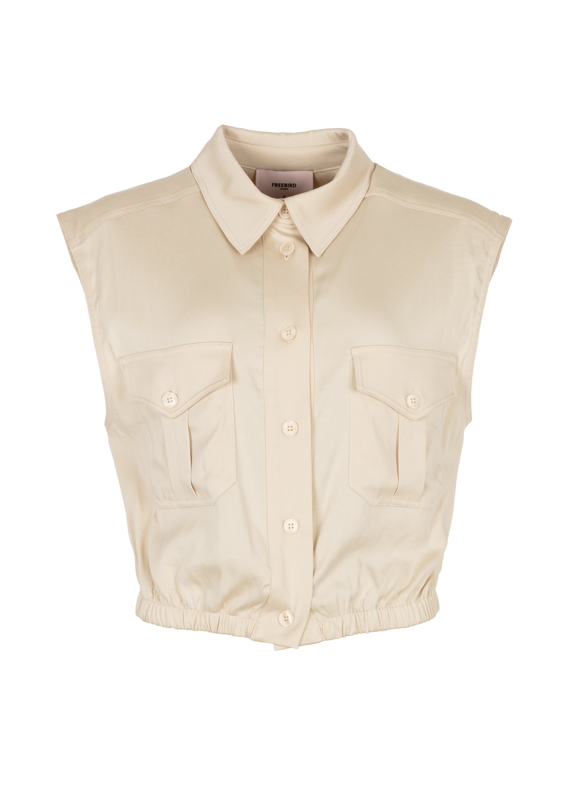 Deze top is gemaakt van een satijngeweven lyocell kwaliteit die prachtig soepel valt en een zachte glans geeft. De borstzakjes en volledige knoopsluiting voegen een stoere, utility-inspired touch toe, terwijl de elastische zoom zorgt voor een flatterend, comfortabel silhouet. De off-white kleur maakt dit item een veelzijdige toevoeging aan elke garderobe — perfect voor zowel casual als chic gestylde looks.