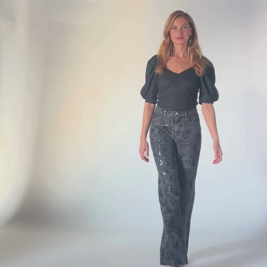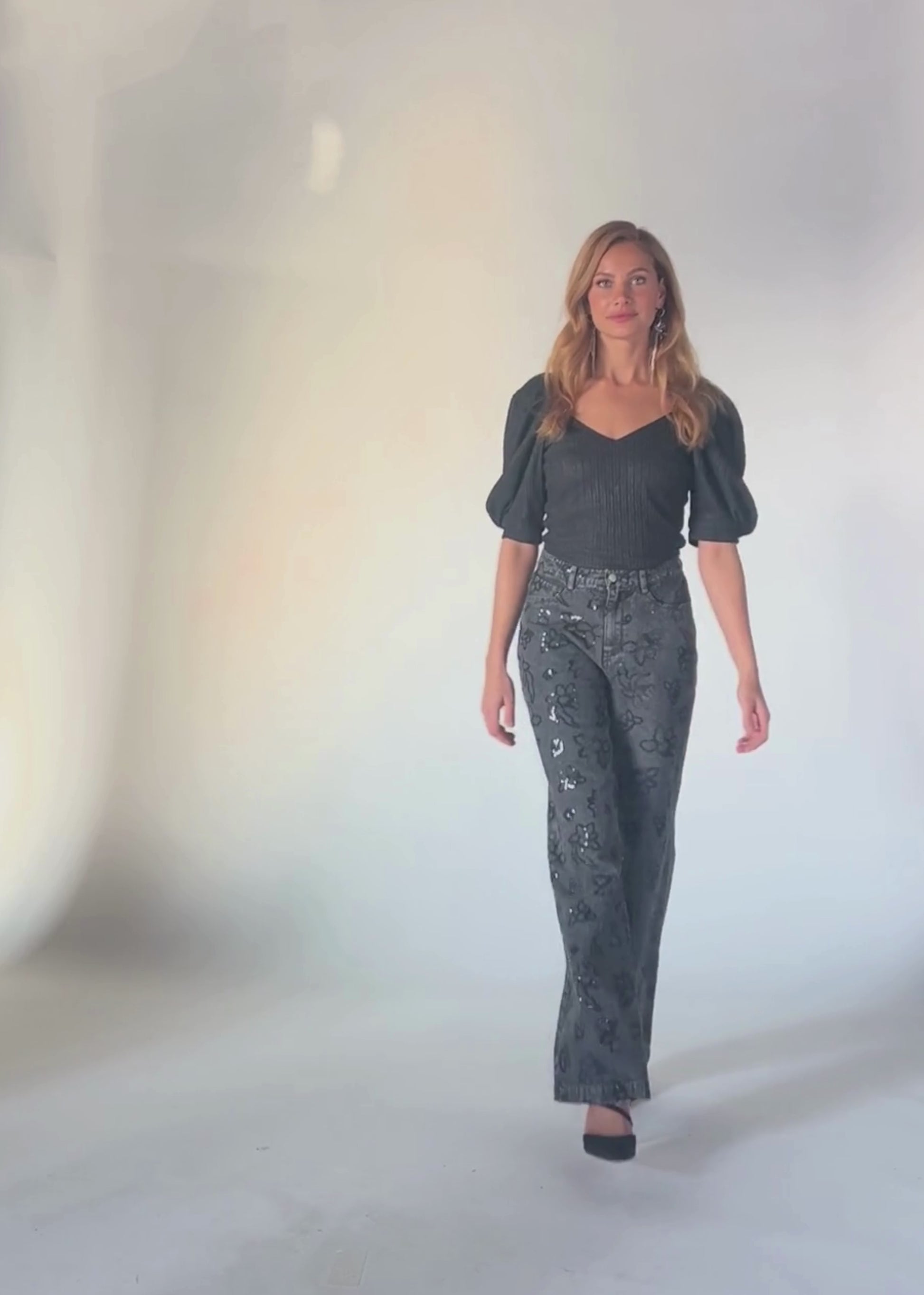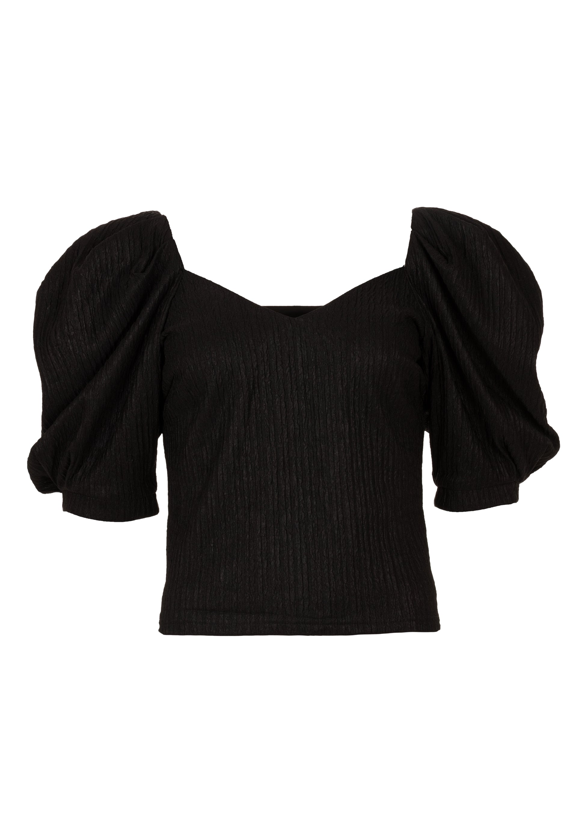 Deze top is gemaakt van een luxe jersey kwaliteit met structuur en subtiele glans, wat zorgt voor een chique en verfijnde look. Dankzij de stretchstof sluit de top mooi aan op het lichaam en biedt hij optimaal draagcomfort. De vrouwelijke neklijn en pofmouwen geven het ontwerp een stijlvolle, romantische touch. Perfect te combineren met een pantalon of rok voor een modieuze, feestelijke outfit.