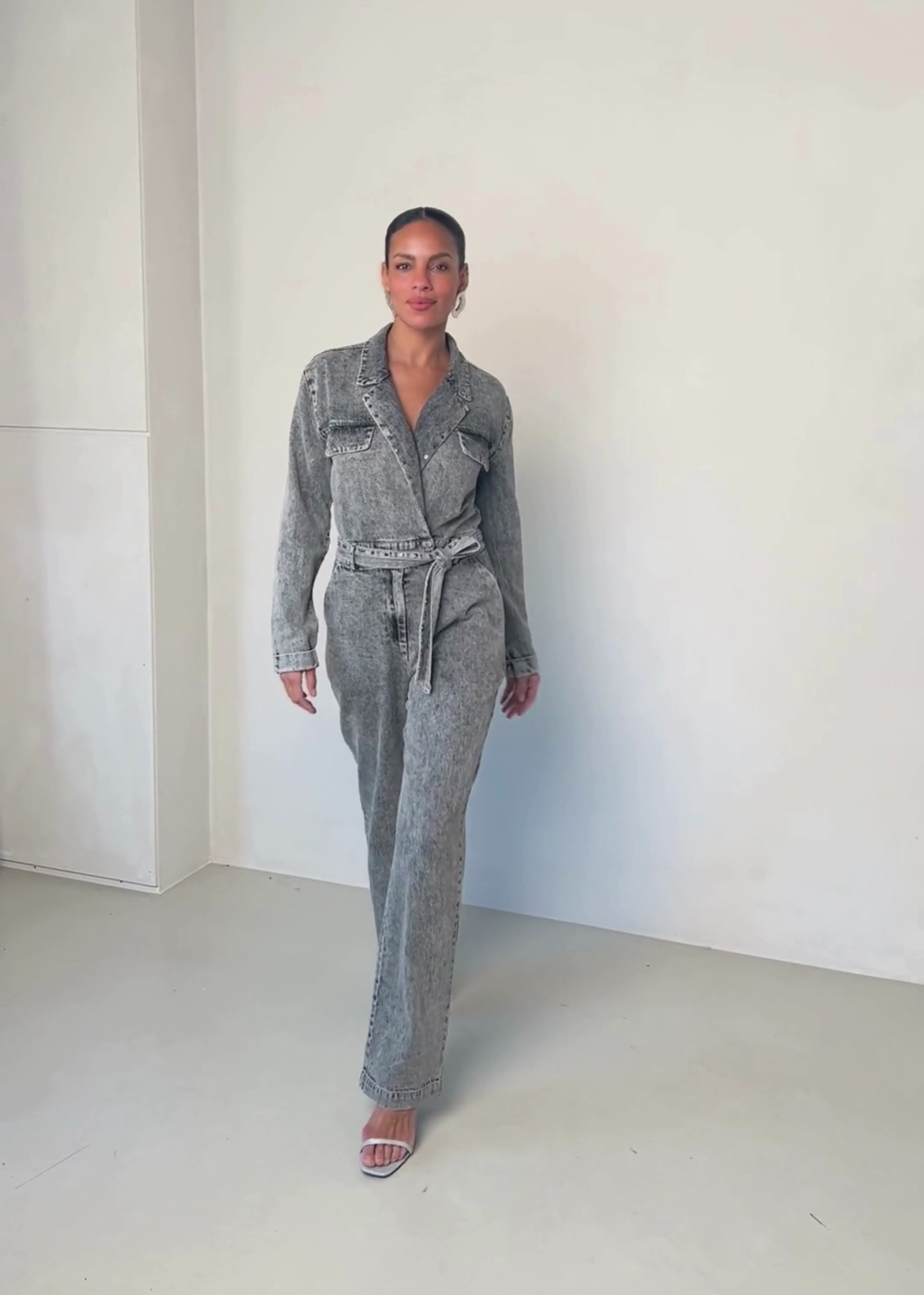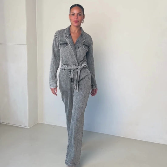 Dit item is gemaakt van een zachte denimstof zonder stretch, die comfortabel en soepel om het lichaam valt. De overslag aan de voorzijde en de strikceintuur in de taille zorgen voor een vrouwelijk silhouet, terwijl subtiele gunmetal studs op de borstzakken een stoere, luxe touch toevoegen.